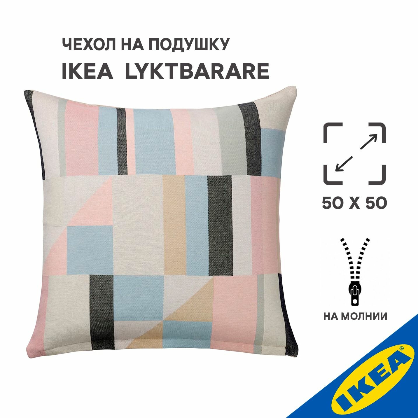 Чехол на подушку 50x50 см светло-бежевый/разноцветный IKEA LYKTBARARE люктбэраре интересное: