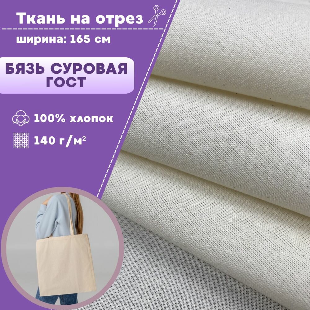 Ткань Бязь суровая ГОСТ (макетная, неотбеленная), 100% хлопок, пл. 140 г/м2, ш-165 см, на отрез, цена за пог. метр интересное: