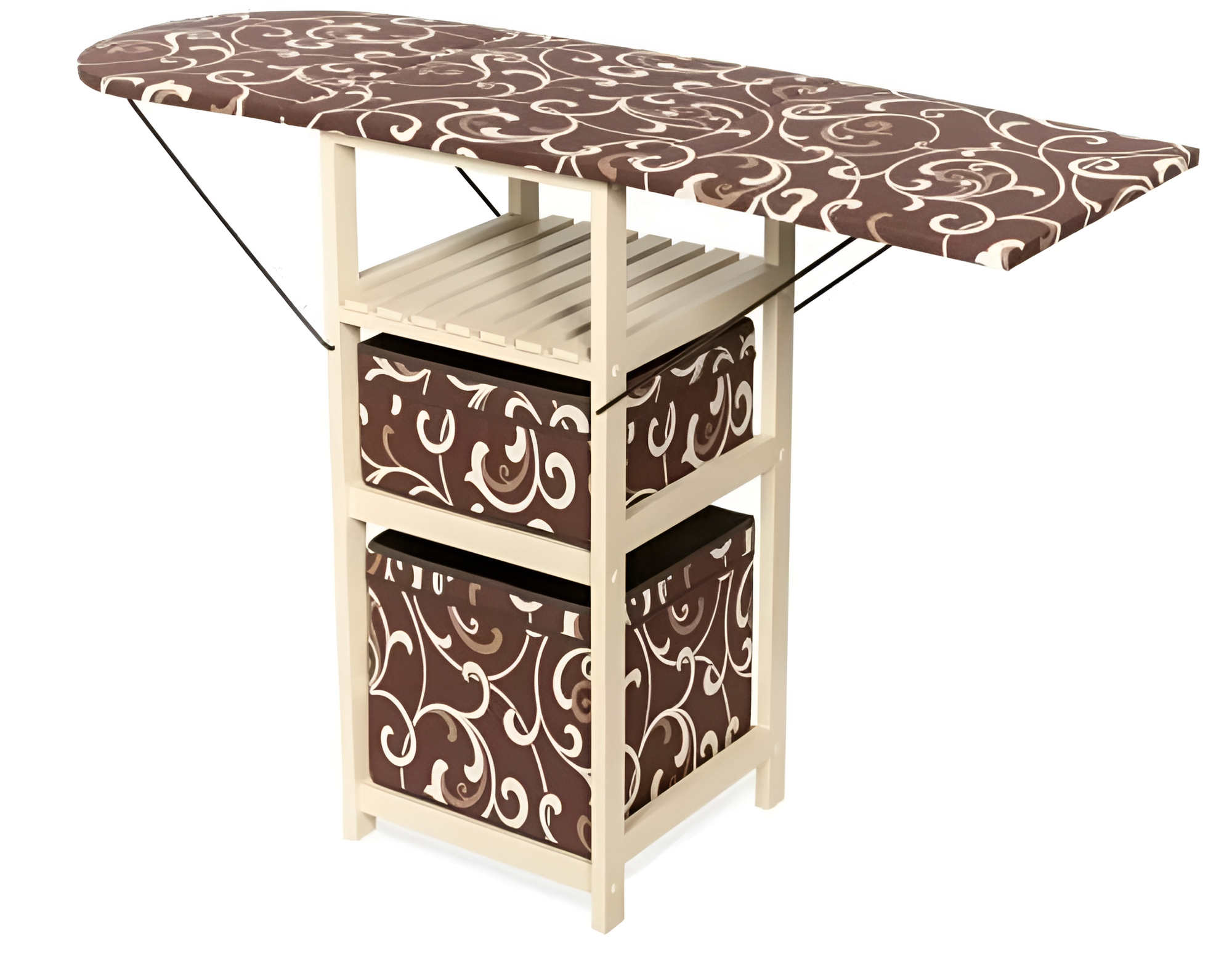 Комод гладильная доска с ящиками из массива, гладильный комод (тип 1) ткань 30 (Слоновая кость)