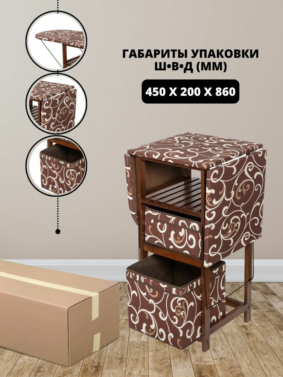 Купить Комод гладильная доска с ящиками из массива, гладильный комод (тип 1) ткань 16 (Орех) раскладной