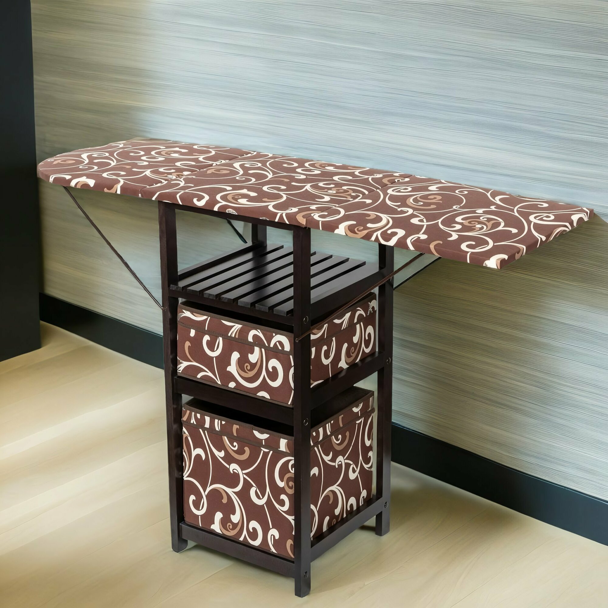 Комод гладильная доска с ящиками из массива, гладильный комод (тип 1) ткань 16 (Орех) раскладной