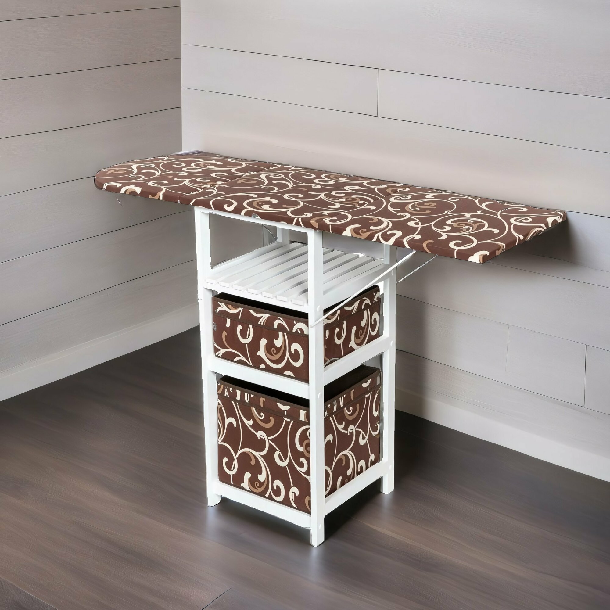 Комод гладильная доска с ящиками из массива, гладильный комод (тип 1) ткань 30 (белый)