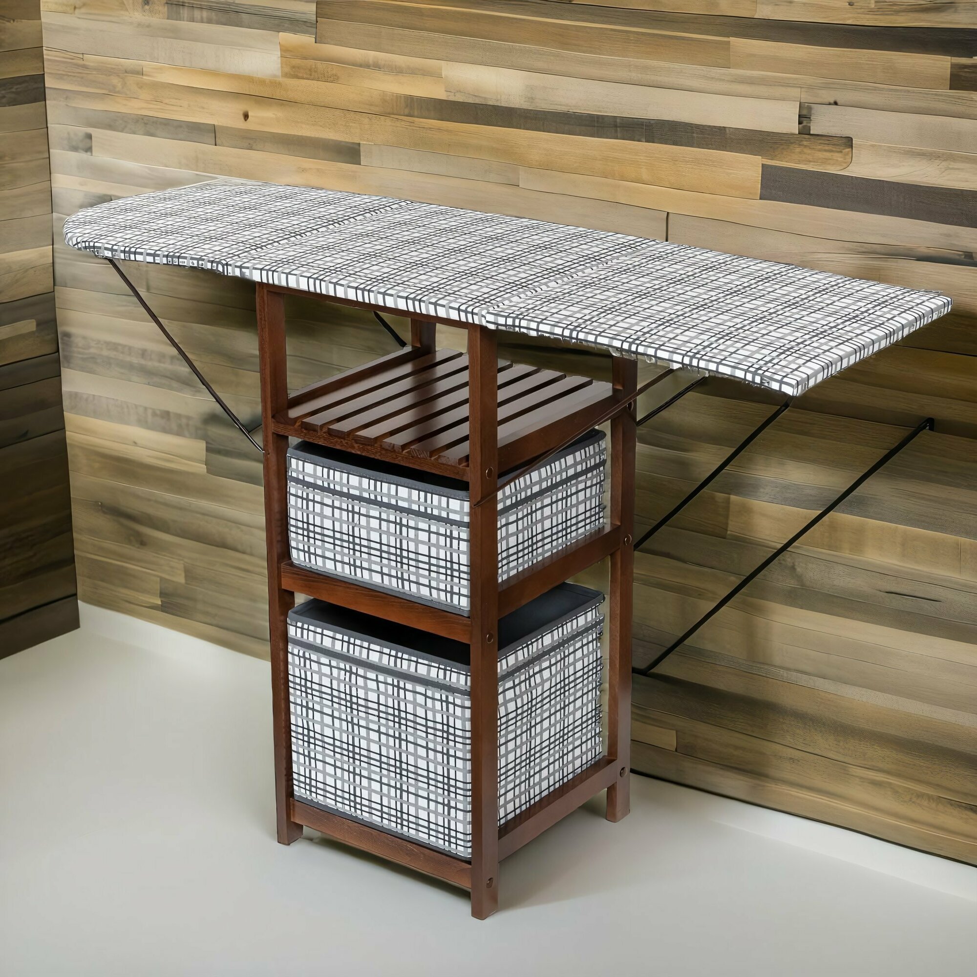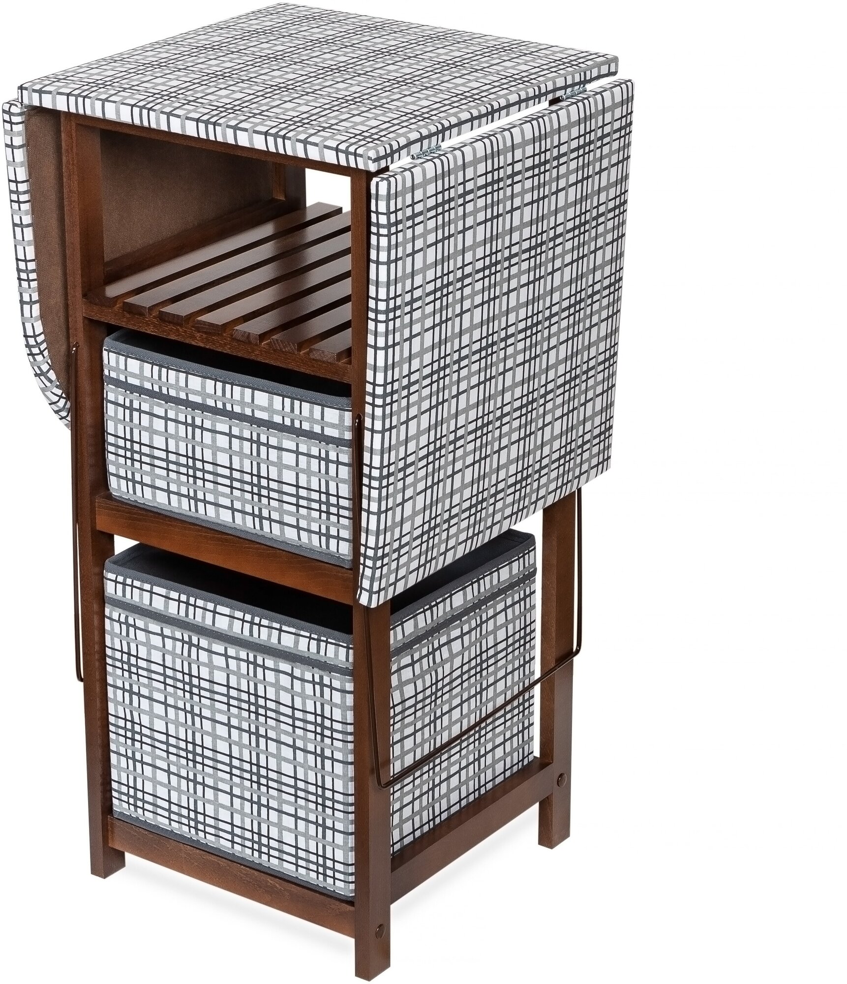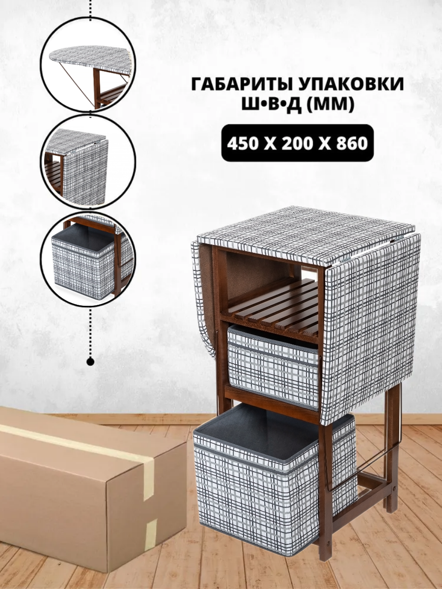 Комод гладильная доска с ящиками из массива, гладильный комод (тип 1) ткань 16 (Орех) раскладной