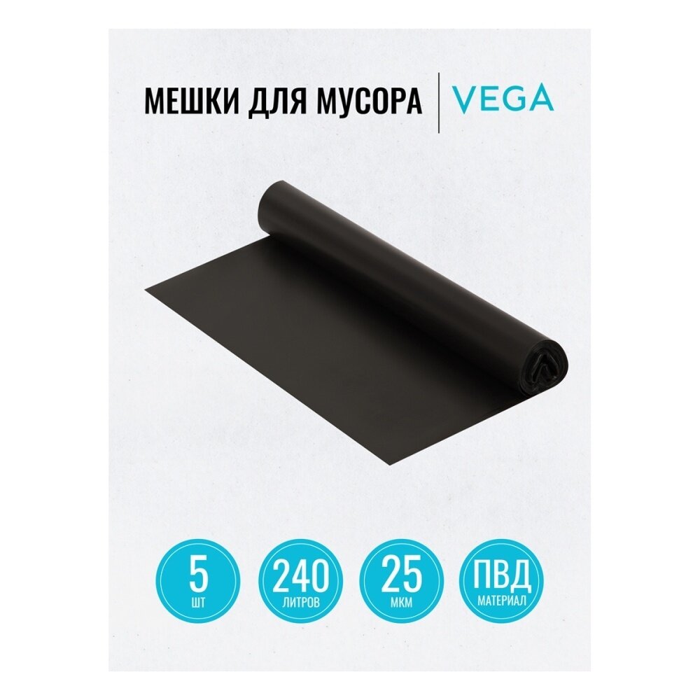 Пакеты для мусора 240л, Vega (90x130см, 25мкм, черные) ПВД, 5шт. в рулоне (344031) интересное: