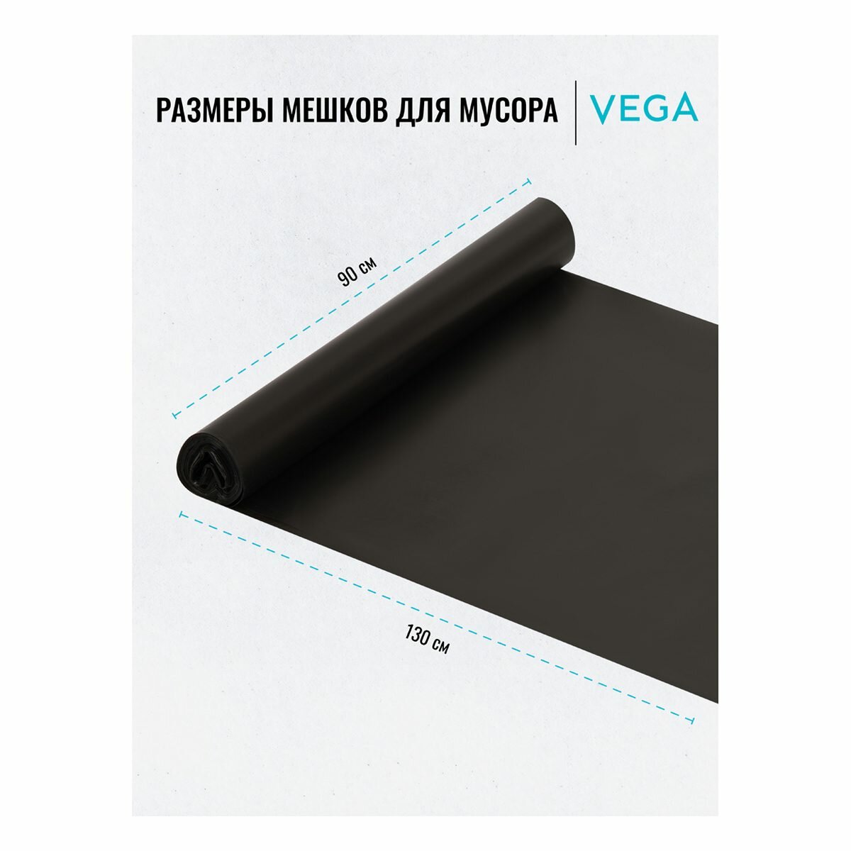 Мешки для мусора 60л Vega ПНД, 60*70см, 8мкм, 30шт., черные, в рулоне