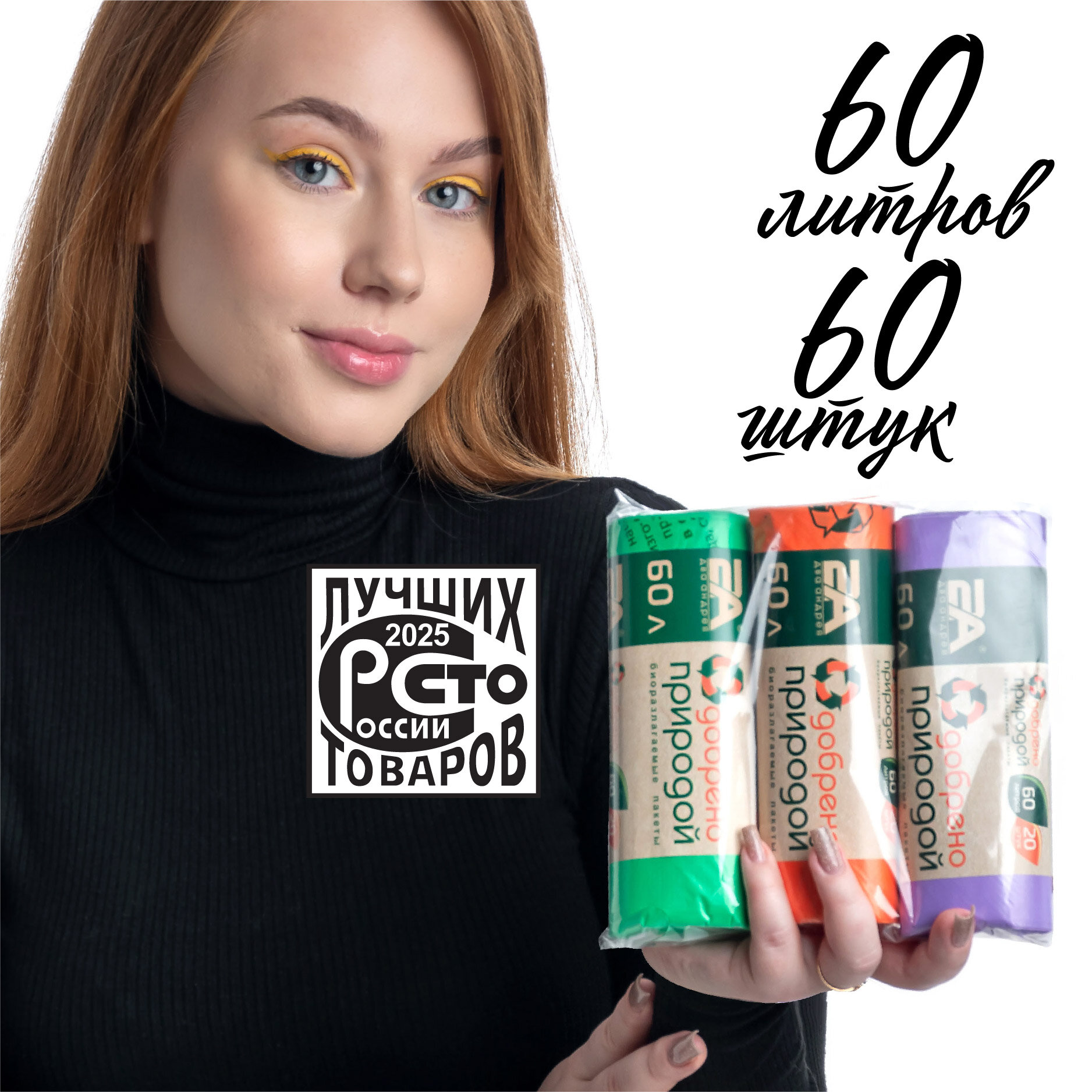 Пакеты для мусора "Два Андрея", биоразлагаемые, полиэтилен, 60шт, 60л интересное: