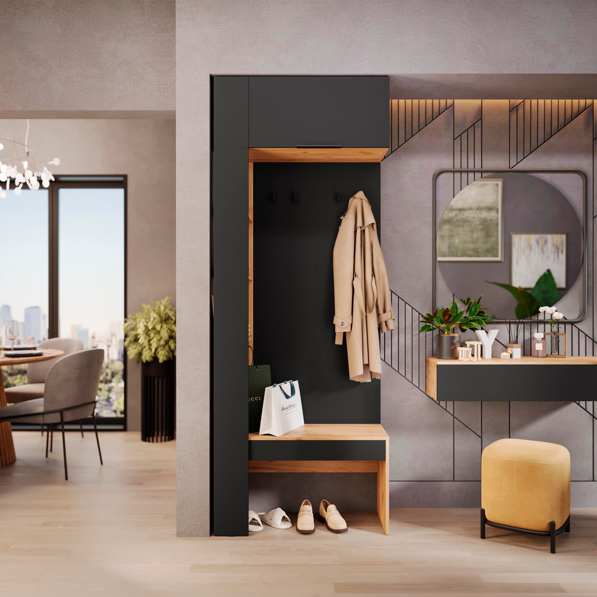 Прихожая , секция комбинированная Асти (Дуб крафт золотой/Антрацит) интересное: