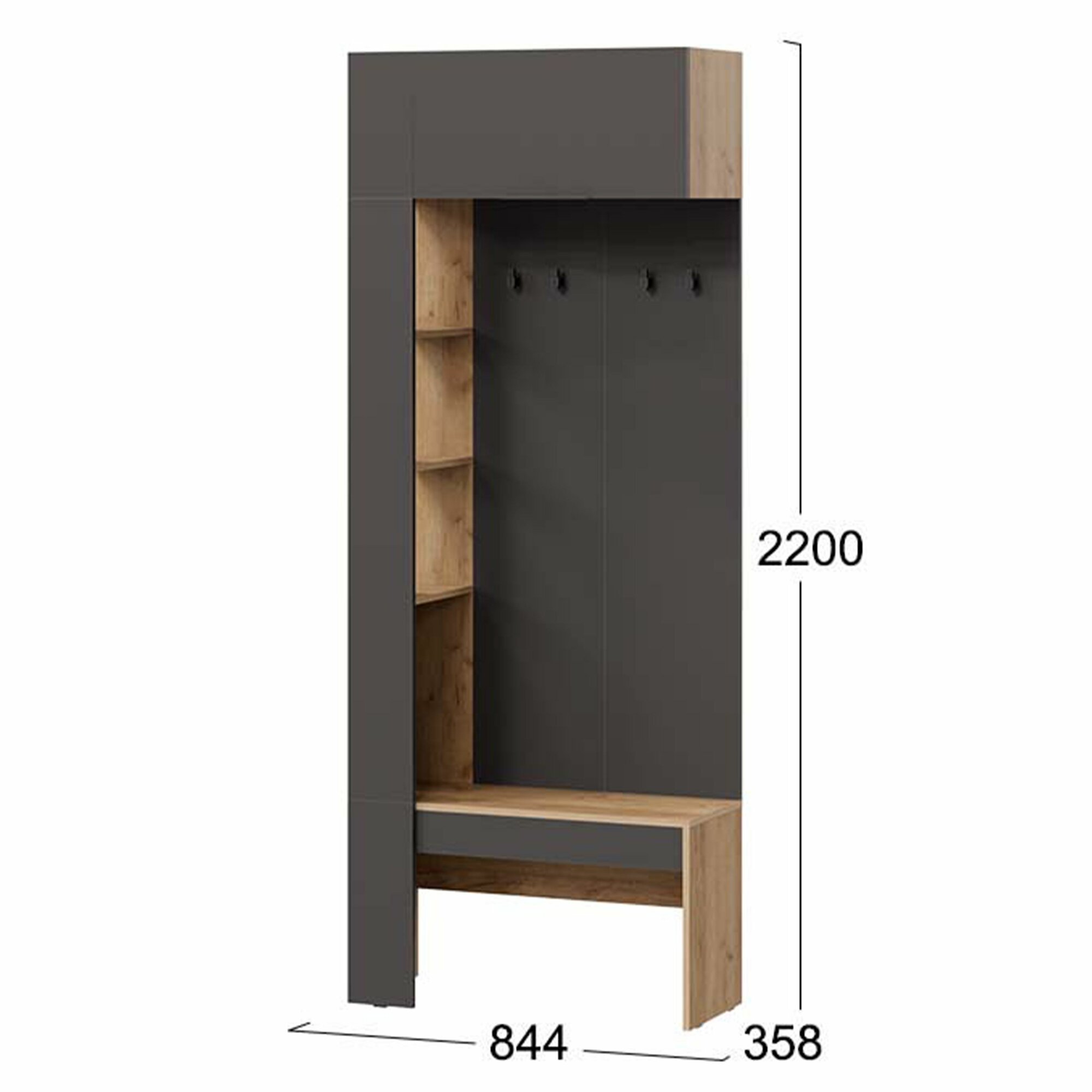 Прихожая Денвер, 800х360х1925, Графит/Дуб гранж