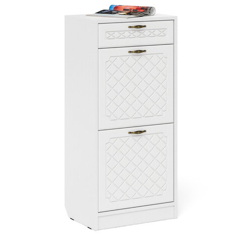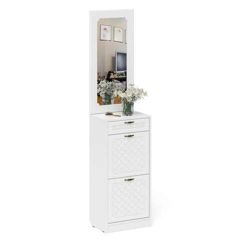 Купить Прихожая П-6 Тумба для обуви 2 секции + Зеркало, цвет белая шагрень/фасады МДФ белое дерево фрезеровка ромб