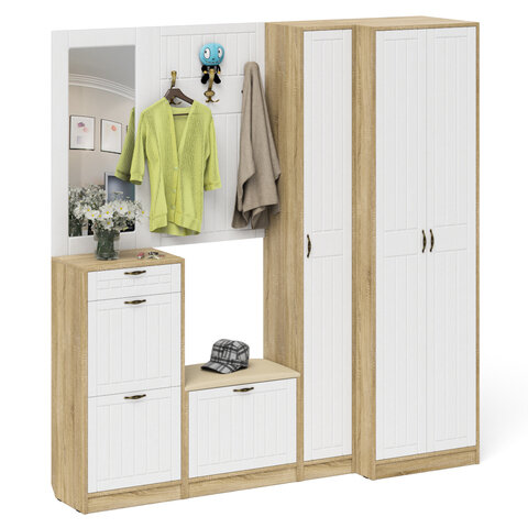Прихожая П-6 компоновка № 8, цвет дуб сонома/фасады МДФ белое дерево фрезеровка прованс, ШхГхВ 180х50х210 см., универсальная сборка