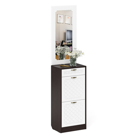 Купить Прихожая П-6 Тумба для обуви 2 секции + Зеркало, цвет венге/фасады МДФ белое дерево фрезеровка ромб