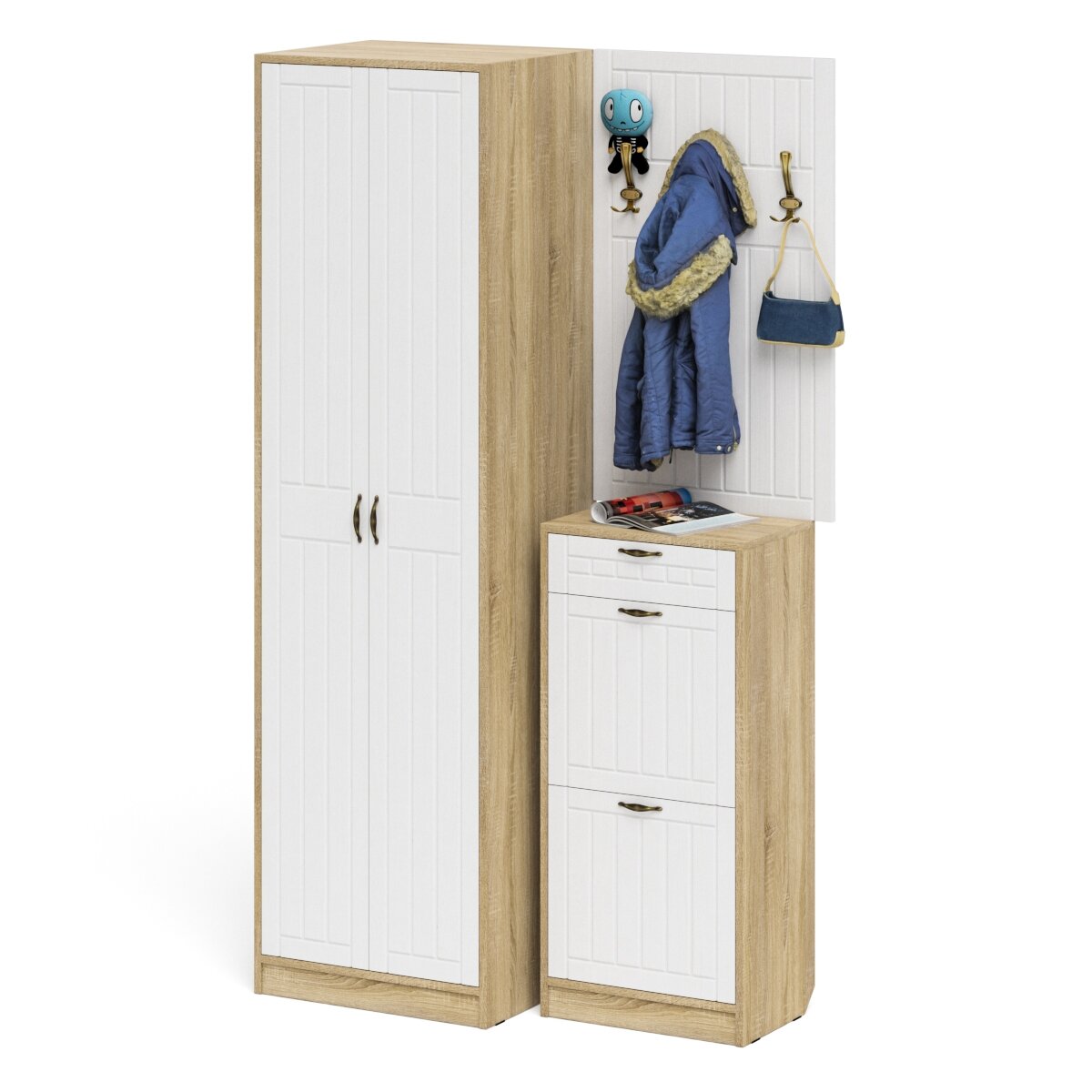 Мебель для прихожей П-6 № 18, цвет дуб сонома/фасады МДФ белое дерево фрезеровка прованс, ШхГхВ 120х50х210 см., универсальная сборка