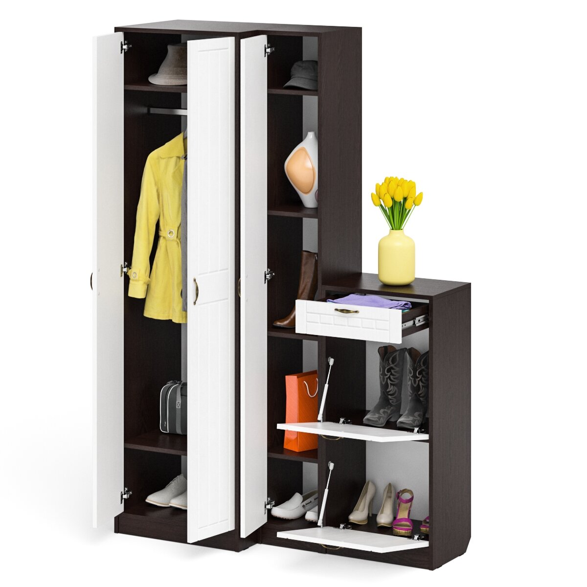 Мебель для прихожей П-6 № 18, цвет венге/фасады МДФ белое дерево фрезеровка прованс, ШхГхВ 120х50х210 см., универсальная сборка