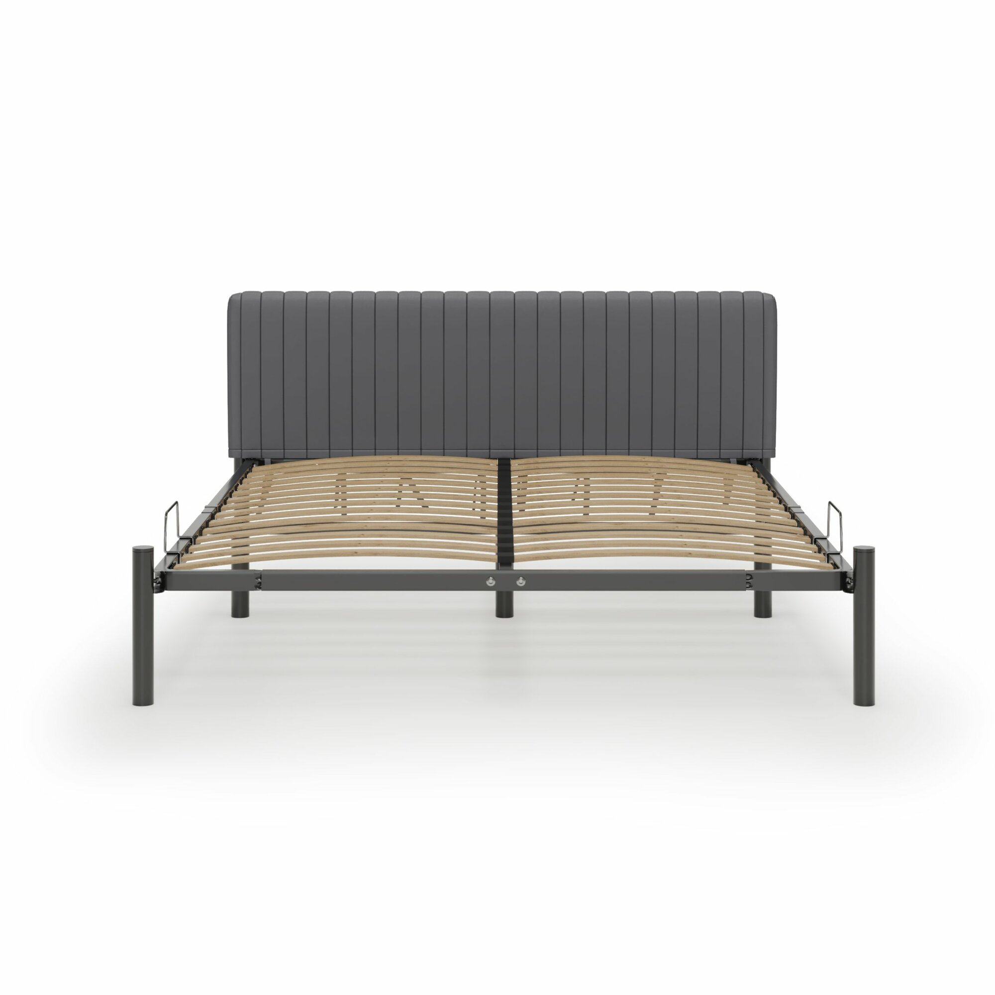 Кровать "Гаррона", 160х200 см, чехол велюр Velutto темно-серый, черный каркас, DreamLite