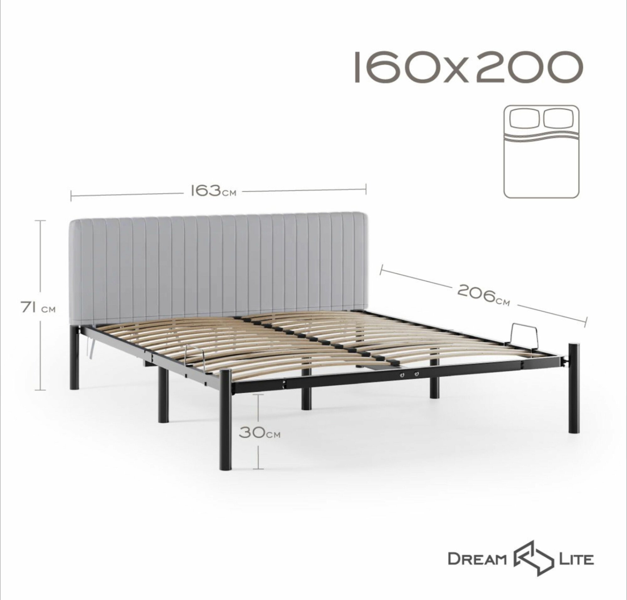 СохранитьКровать "Гаррона блэк", 160х200 см, велюр Velutto серый, черный каркас, DreamLite интересное: