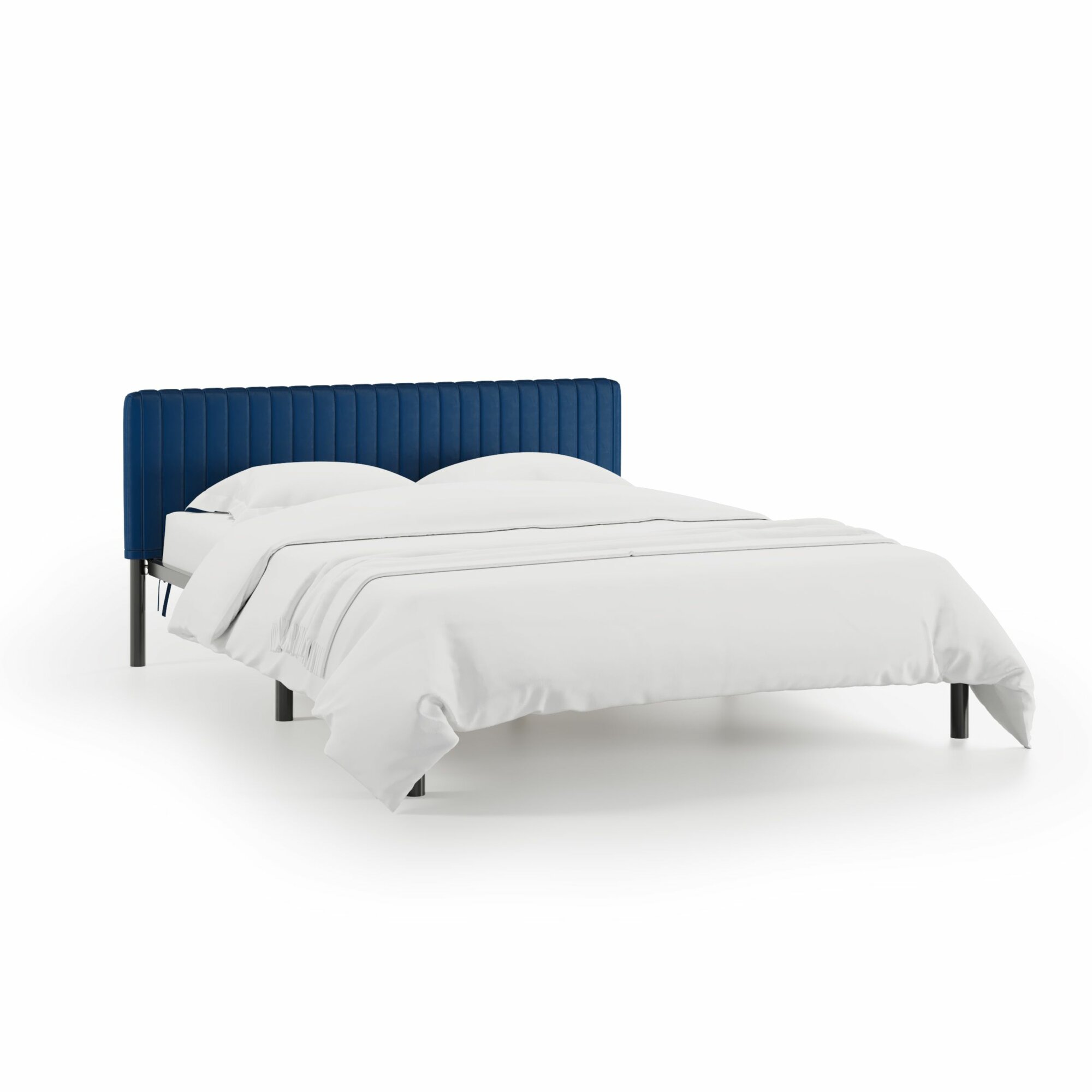 Кровать "Гаррона", 160х200 см, чехол велюр Velutto синий, черный каркас, DreamLite