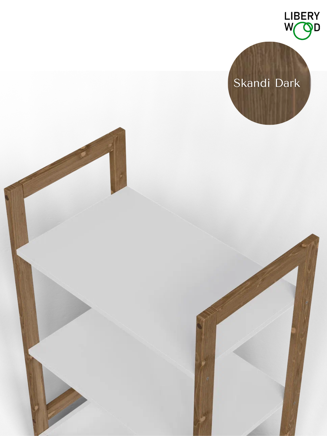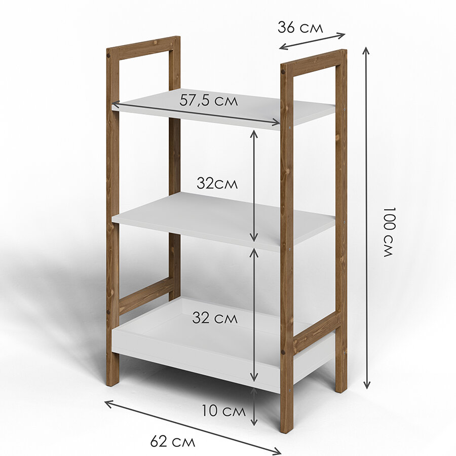 Купить Стеллаж Libery Wood "ОТТО", скандинавский стиль, 62х37х100 см, белая/темно-коричневая