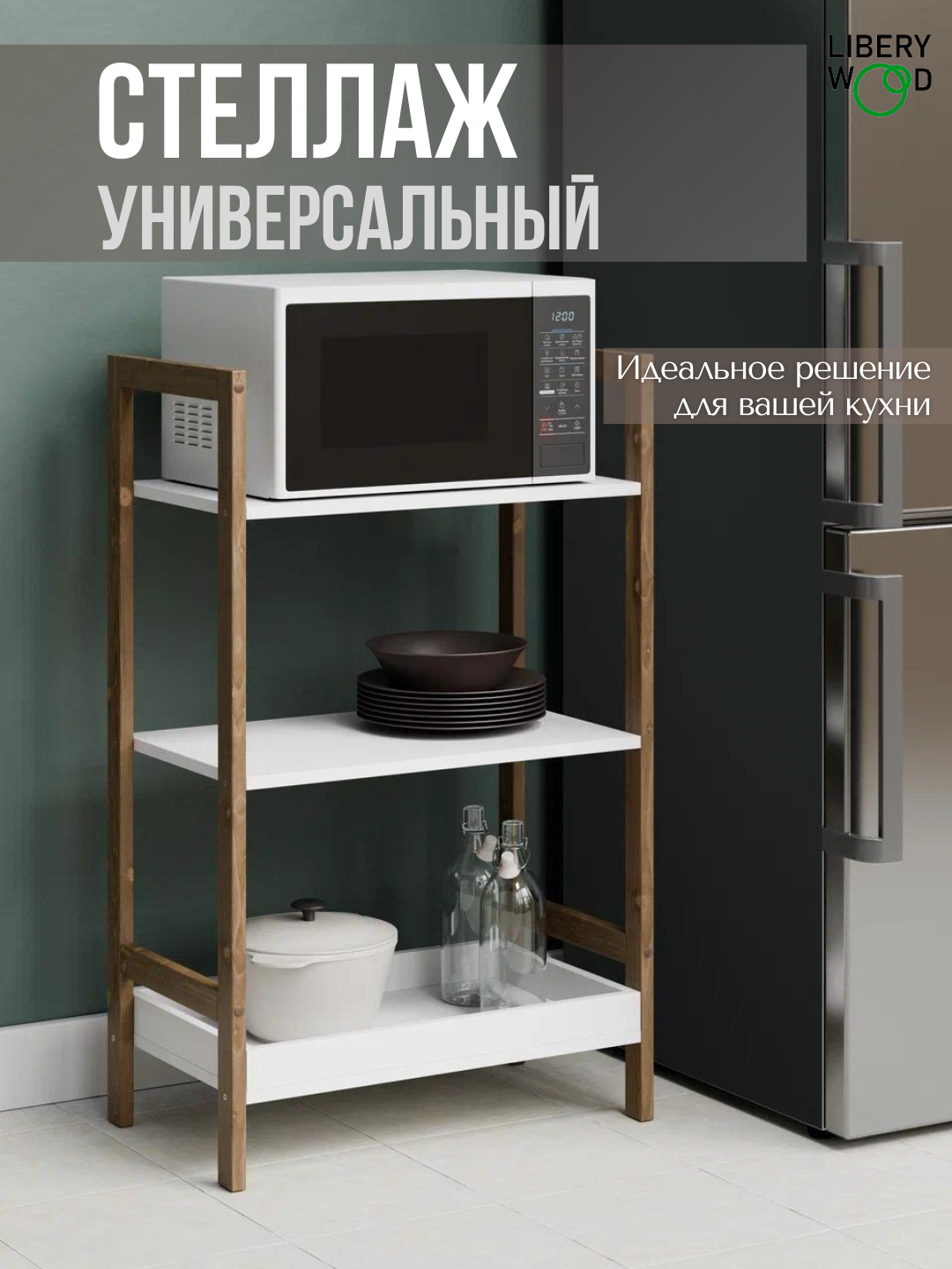 Стеллаж Libery Wood "ОТТО", скандинавский стиль, 62х37х100 см, белая/темно-коричневая интересное: