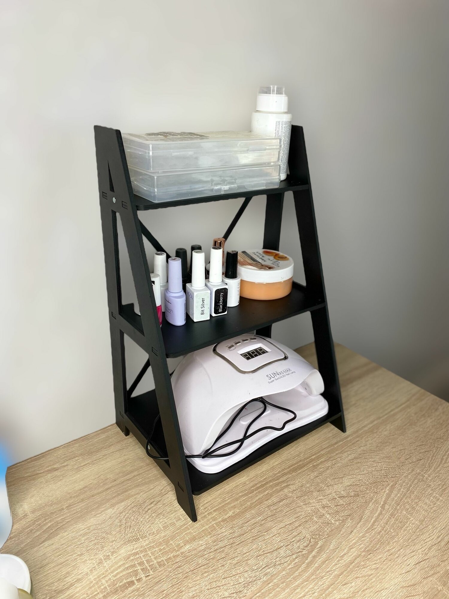 Этажерка трехярусная настольная деревянная 26*20*40 см, Чёрная, перфорированные полки