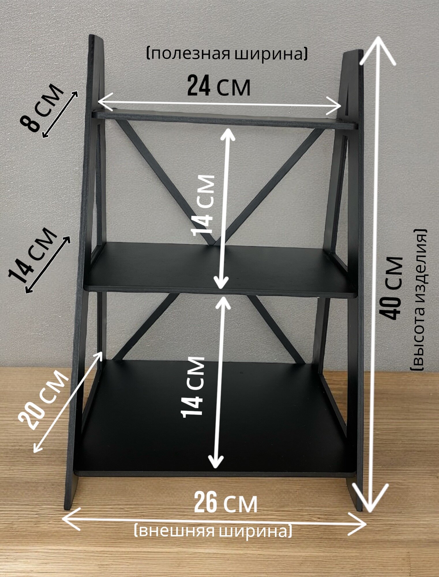 Этажерка трехярусная настольная деревянная 26*20*40 см, Чёрная, сплошные полки интересное: