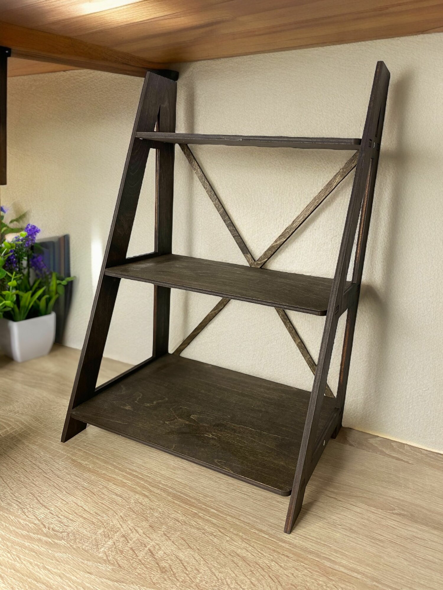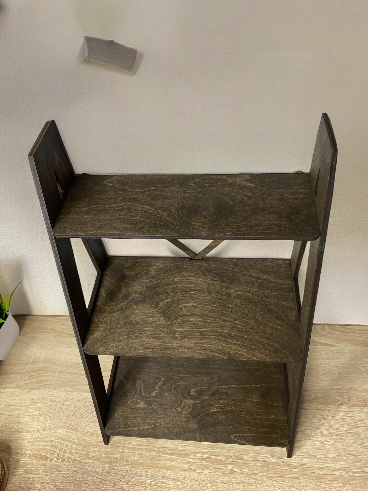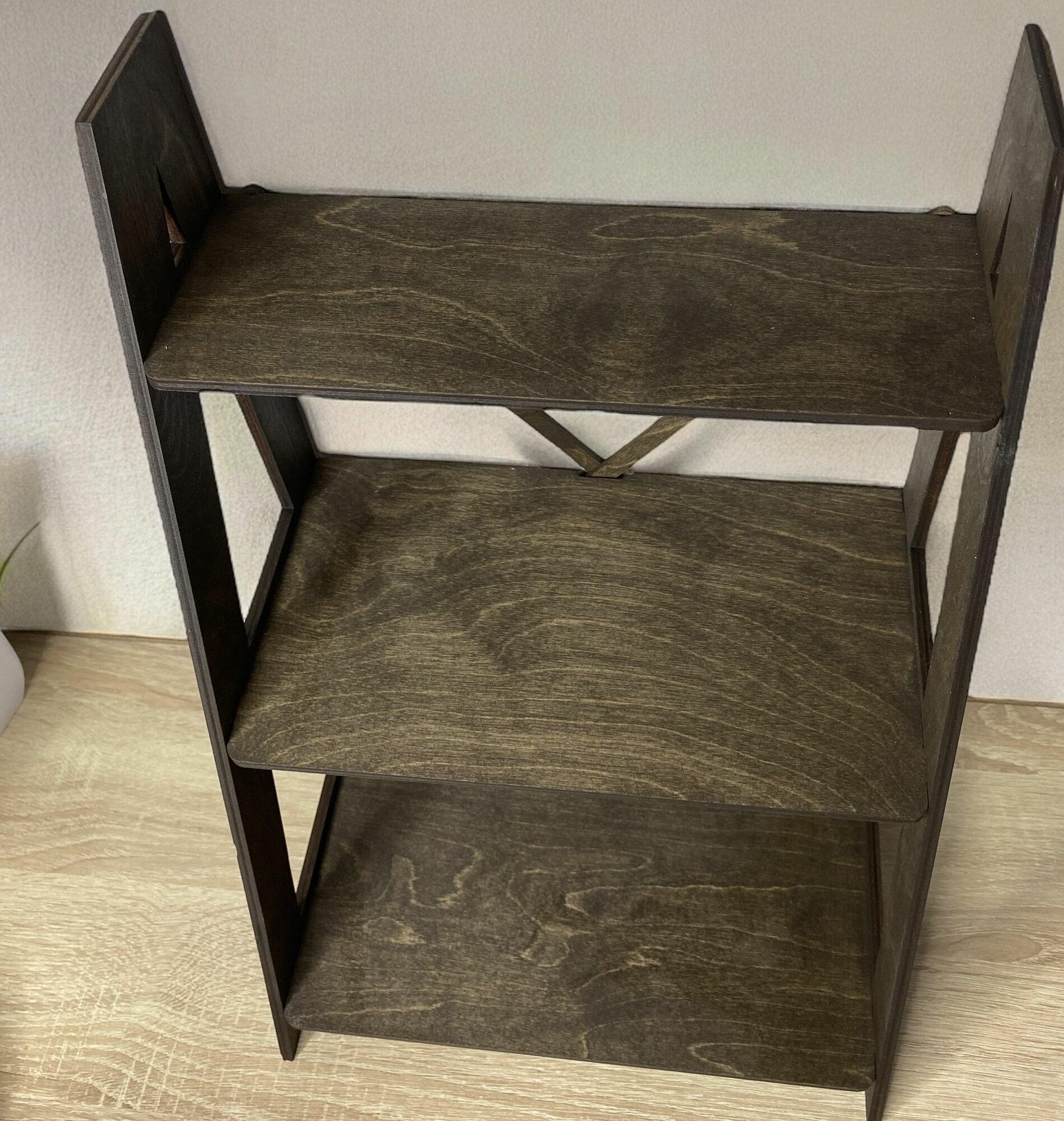 Этажерка трехярусная настольная деревянная 26*20*40 см, Венге сплошные полки интересное: