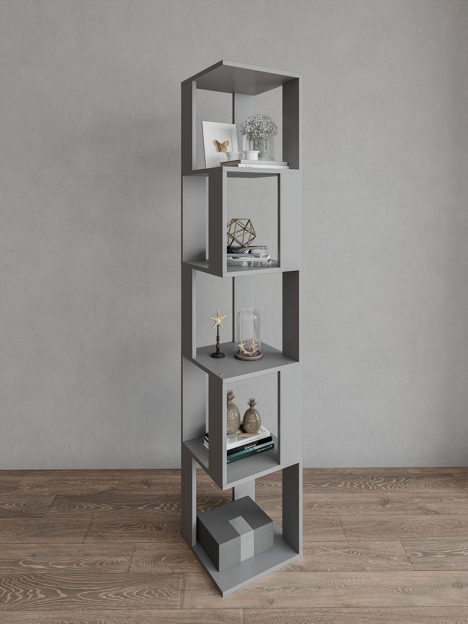 Стеллаж деревянный Нонтон Симпл графит 40.2x51.4x190 см, с ящиками