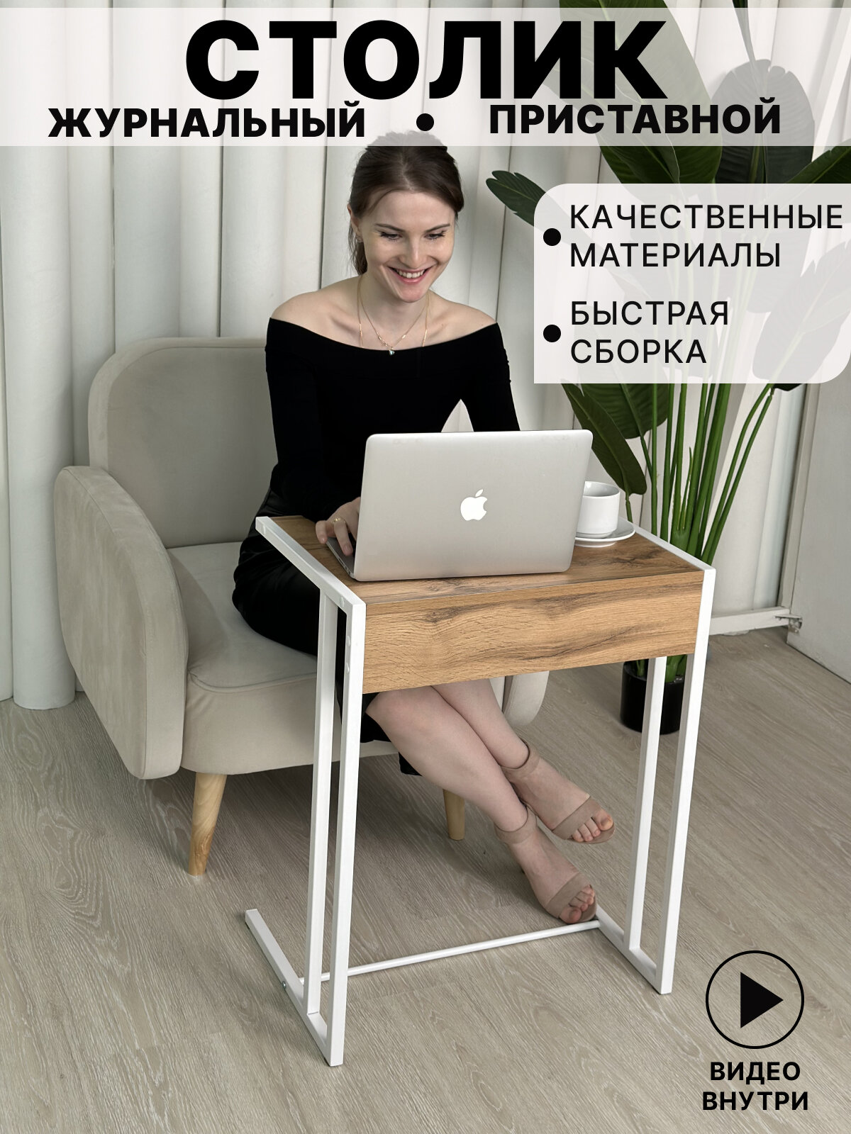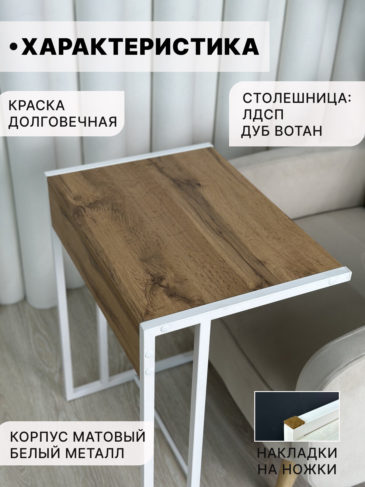 СохранитьЖурнальный столик прикроватный столик приставной MEBELVSTILE Loft, 70 x 40 x 70 см приставной, вотан/белый, лофт интересное: