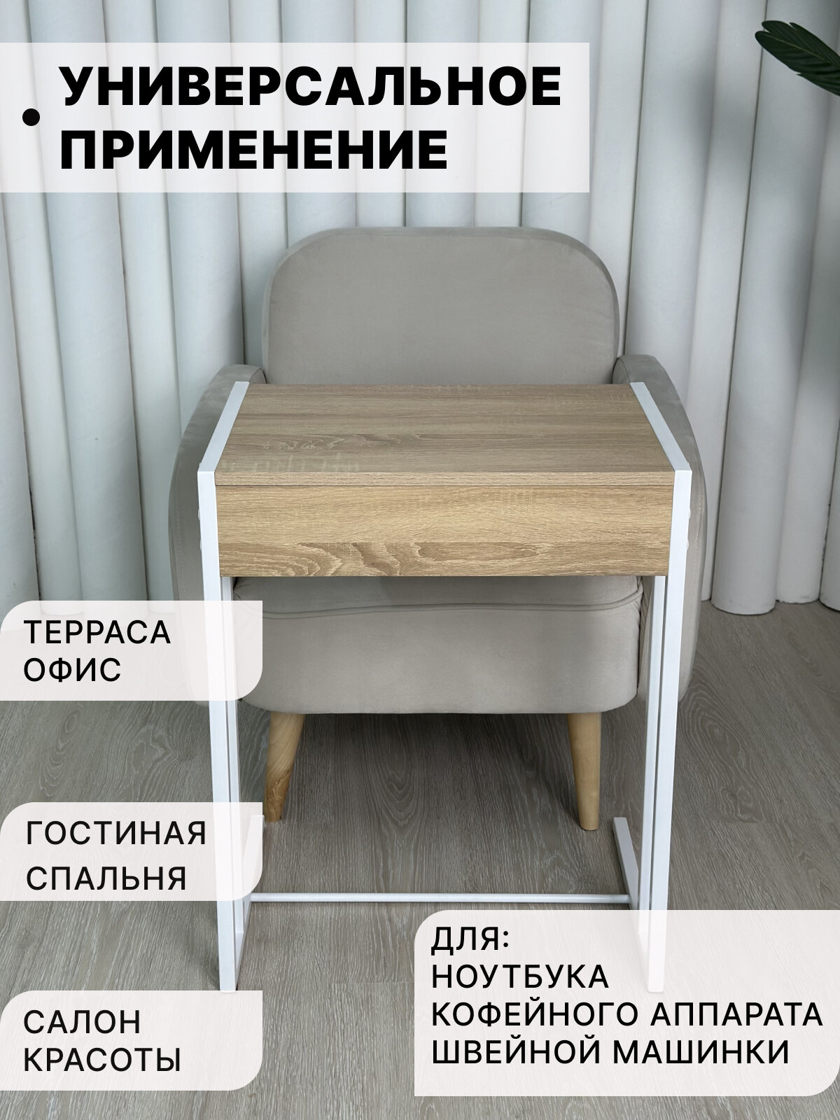 Столик журнальный приставной прикроватный сонома белый