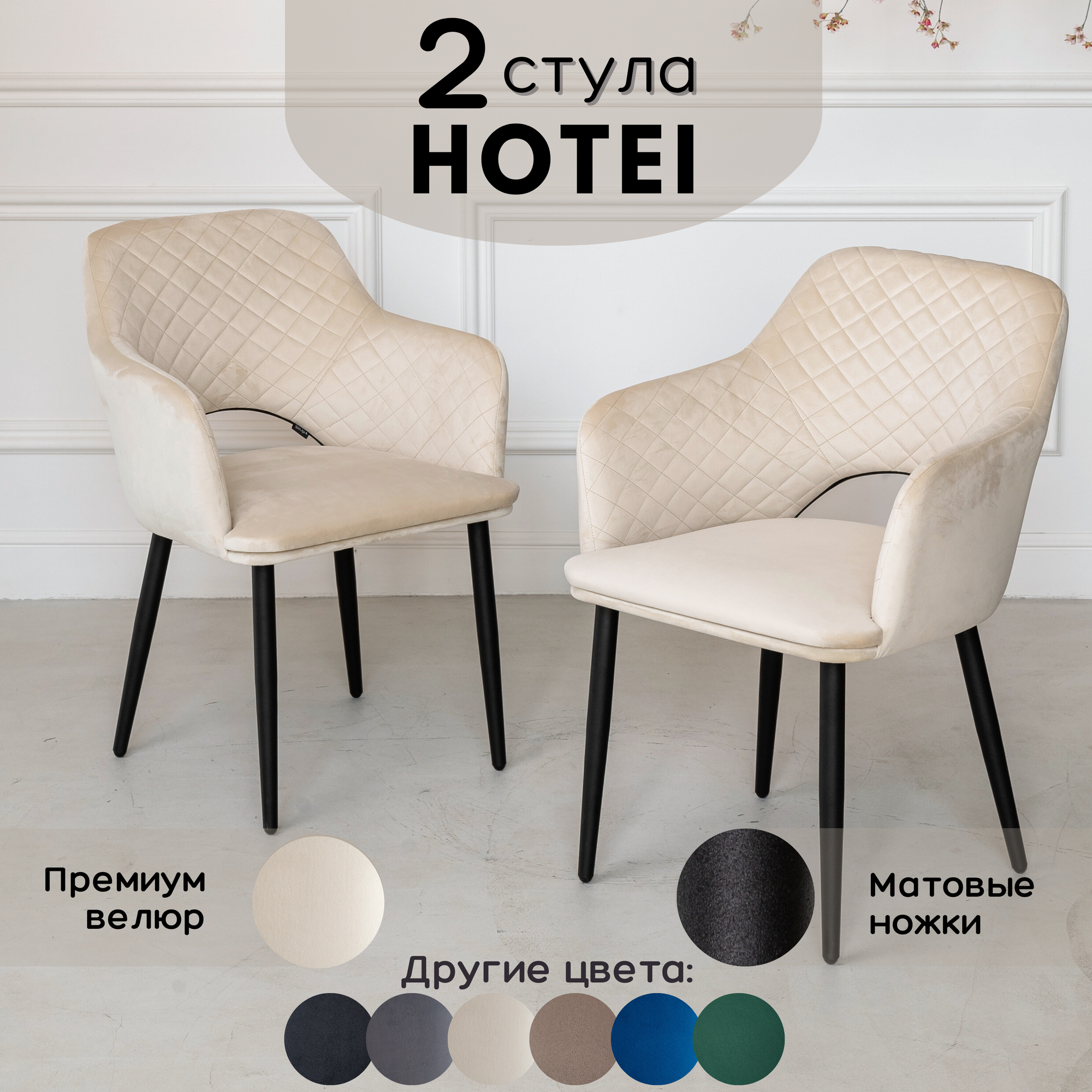 Стулья кухонные Hotei 2 шт, Бежевый велюр, матовые ножки