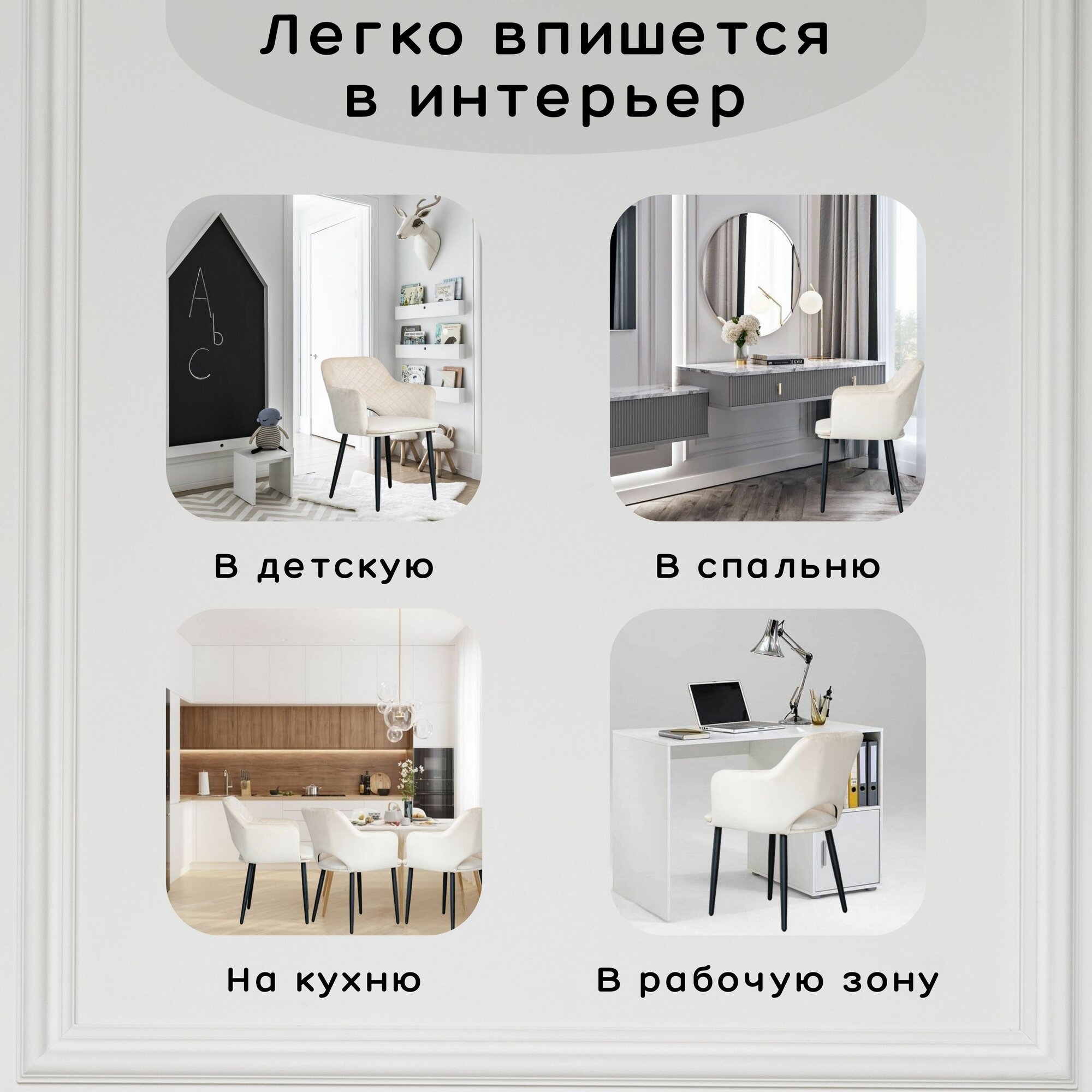 Стулья кухонные комплект 4 штуки, Hotei Бежевый велюр, черные матовые ножки