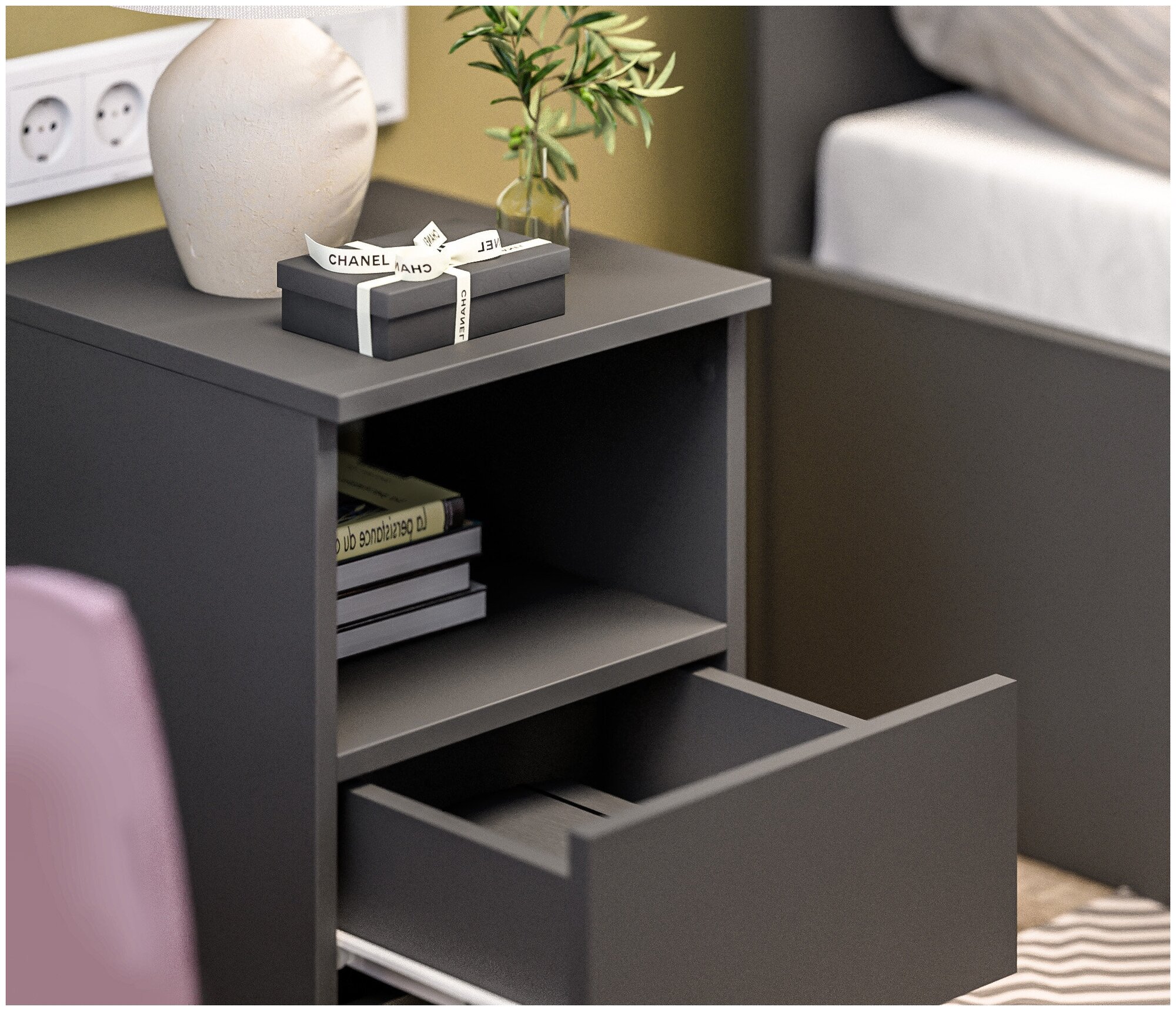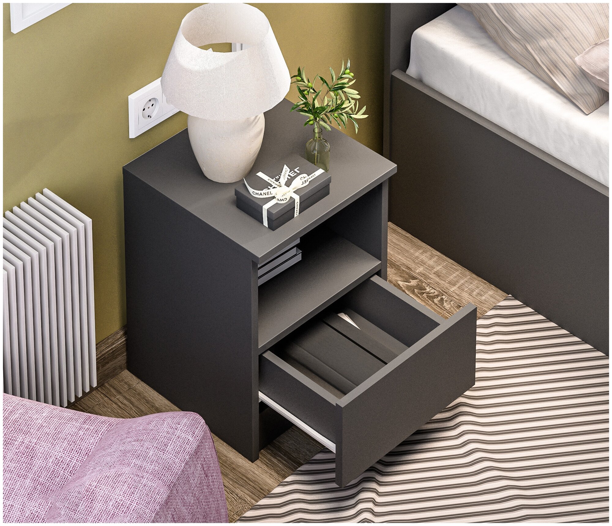 Купить Прикроватная тумба "Сити", с выдвижным ящиком и полкой, ЛДСП Графит, 35x44x35 см