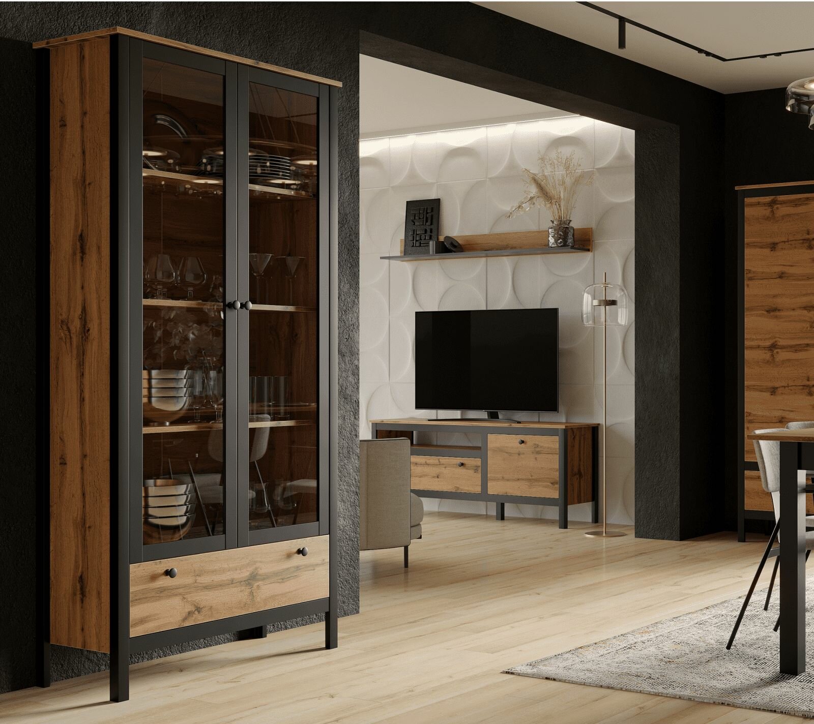 Шкаф / Комод низкий Loft REG1D1S/90 (Дуб вотан/Черный) Black Red White 1 уп.