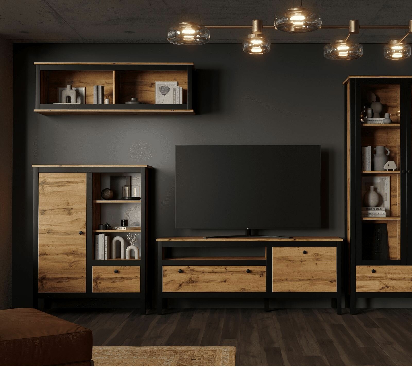 Купить Тумба под телевизор Loft RTV1D1S дуб вотан, напольная с ящиками и полкой