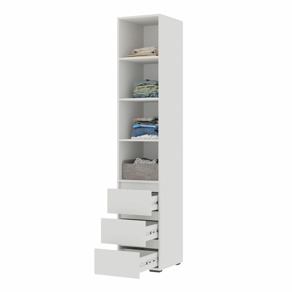 Пенал с ящиками Хелен ПН-03 (400*2100*460, ЛДСП, Белый шагрень, Стендмебель)