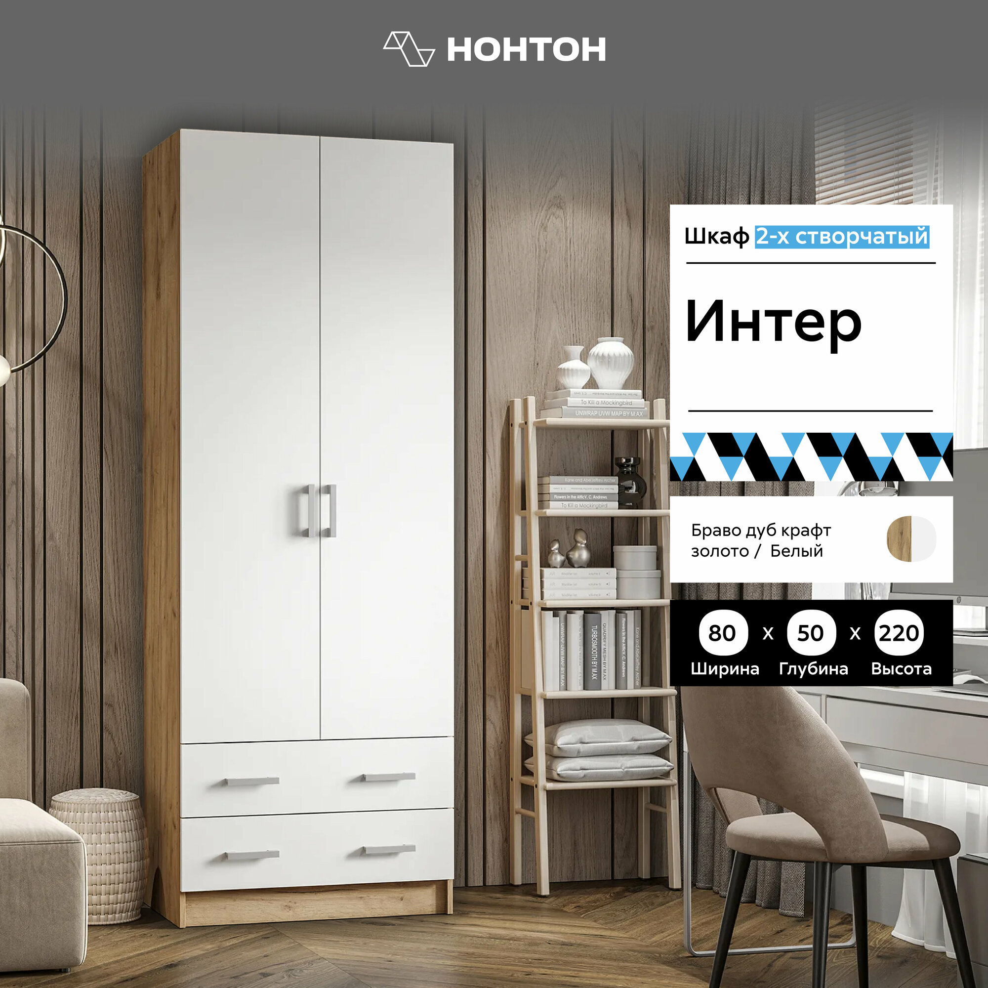 Шкаф 2-х створчатый Нонтон Интер дуб крафт золото / белый 80x50x220 см
