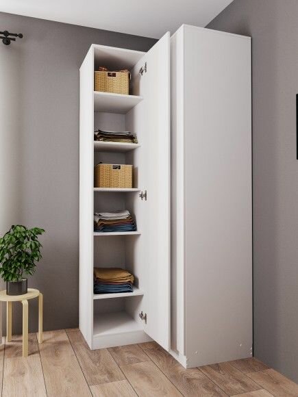 Шкаф для одежды распашной Нонтон Луас, 120 см, 7 полок и штанга, белый глянец