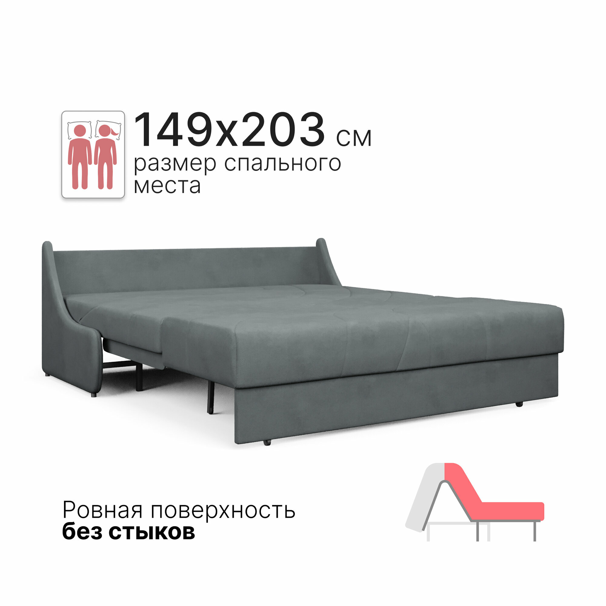 Диван-кровать раскладной Прямой на металлокаркасе, Аккордеон, ортопедический, 162х200 спальное место, Клайд, велюр серый