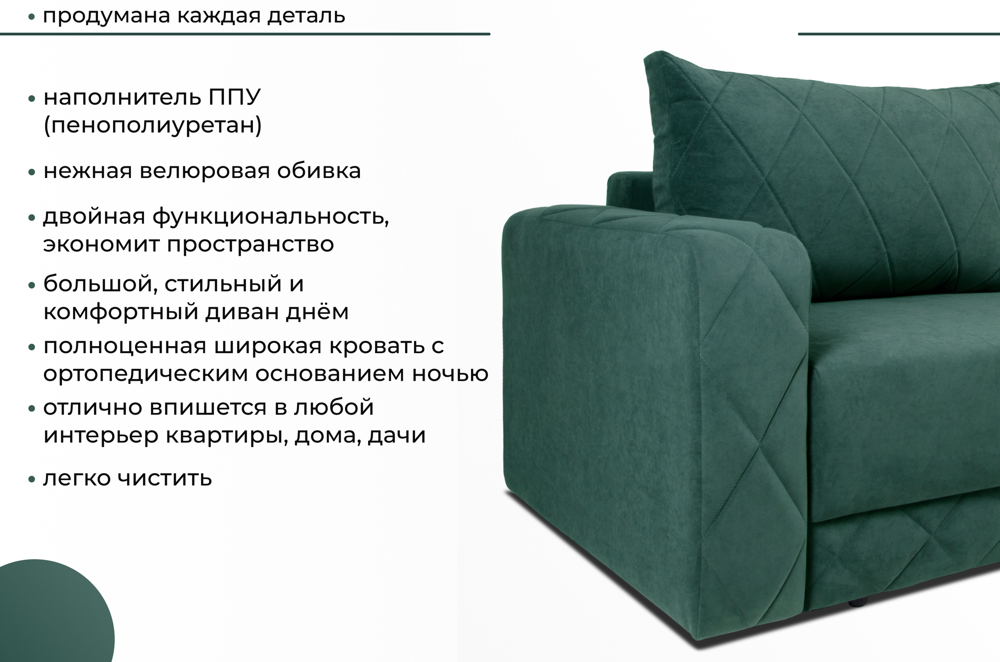 Диван раскладной Лофт Леонардо , велюр, диван раскладной, двухспальный, еврокнижка, диван прямой