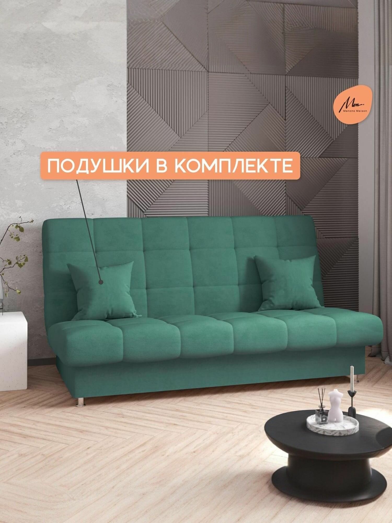 Купить Прямой диван Manons Maison Юта, раскладной механизм Клик-кляк, Велюр зеленый, 190х98х98 см