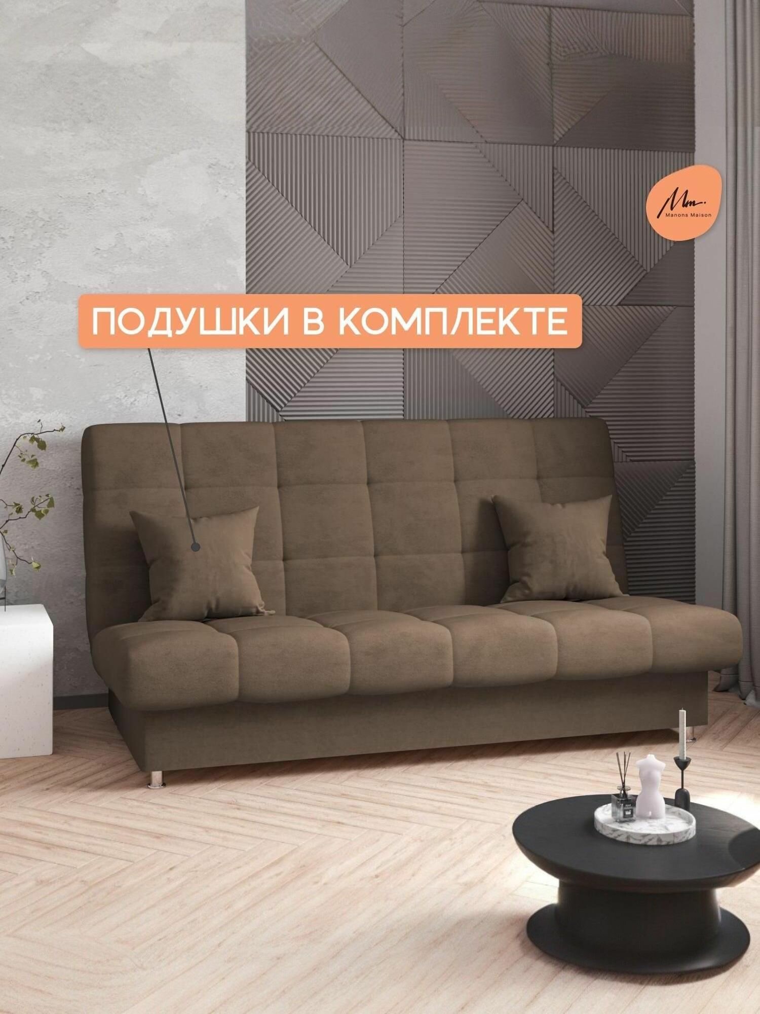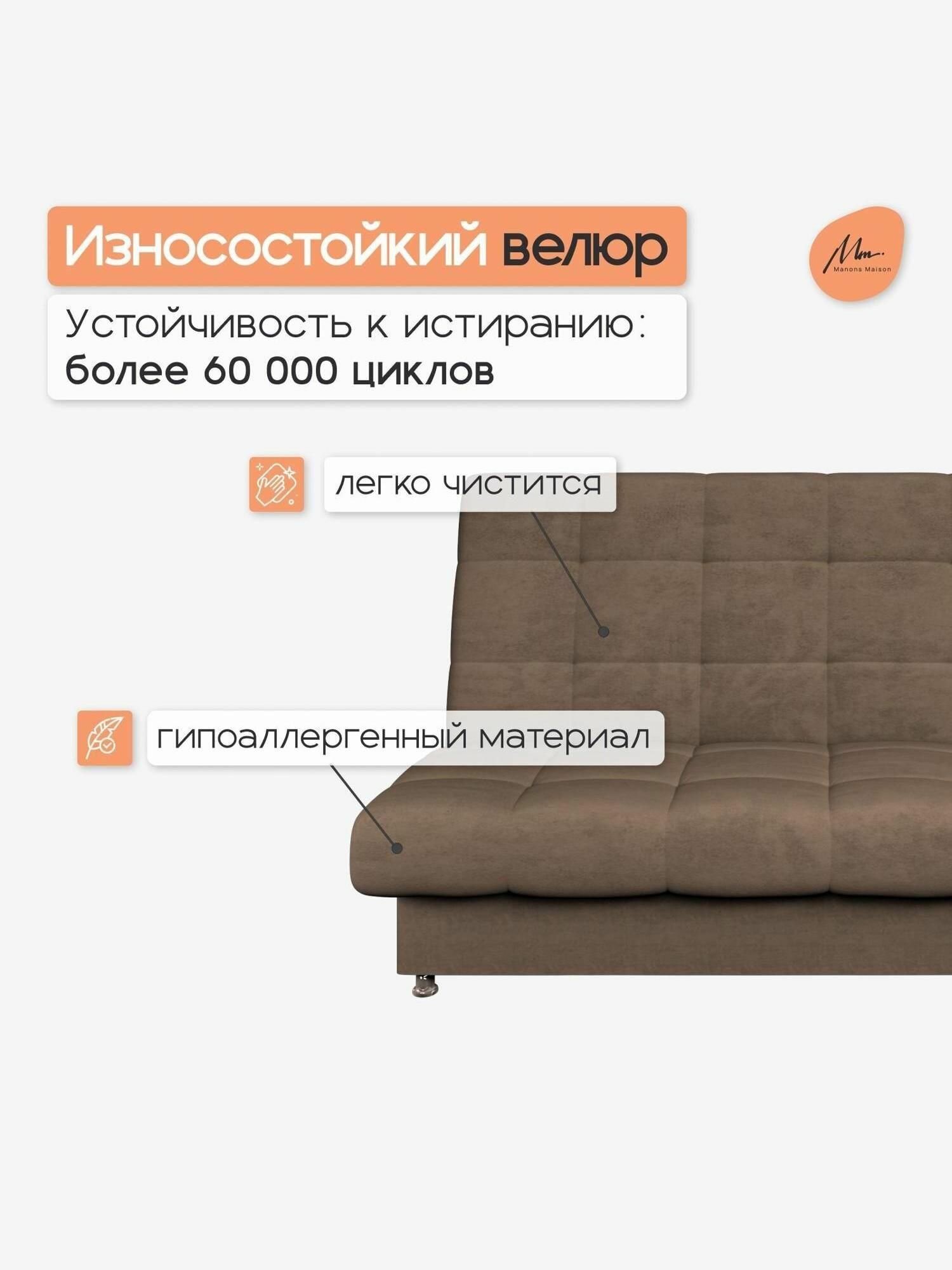 Купить Прямой диван Manons Maison Юта, раскладной механизм Клик-кляк, Велюр коричневый, 190х98х98 см