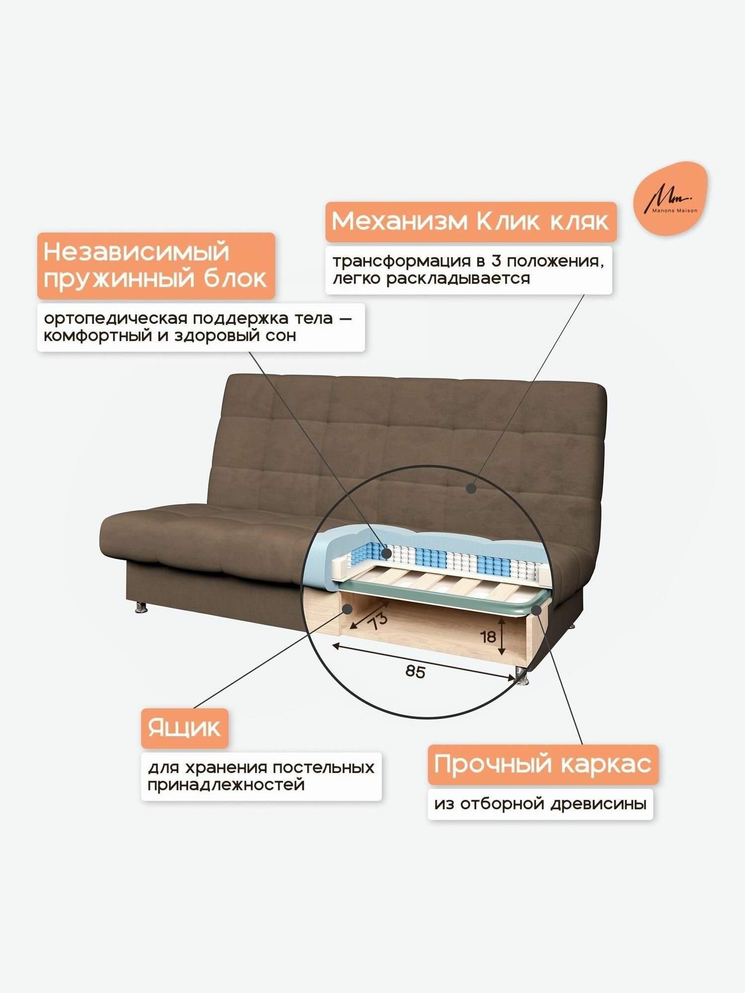 СохранитьПрямой диван Manons Maison Юта, раскладной механизм Клик-кляк, Велюр коричневый, 190х98х98 см интересное: