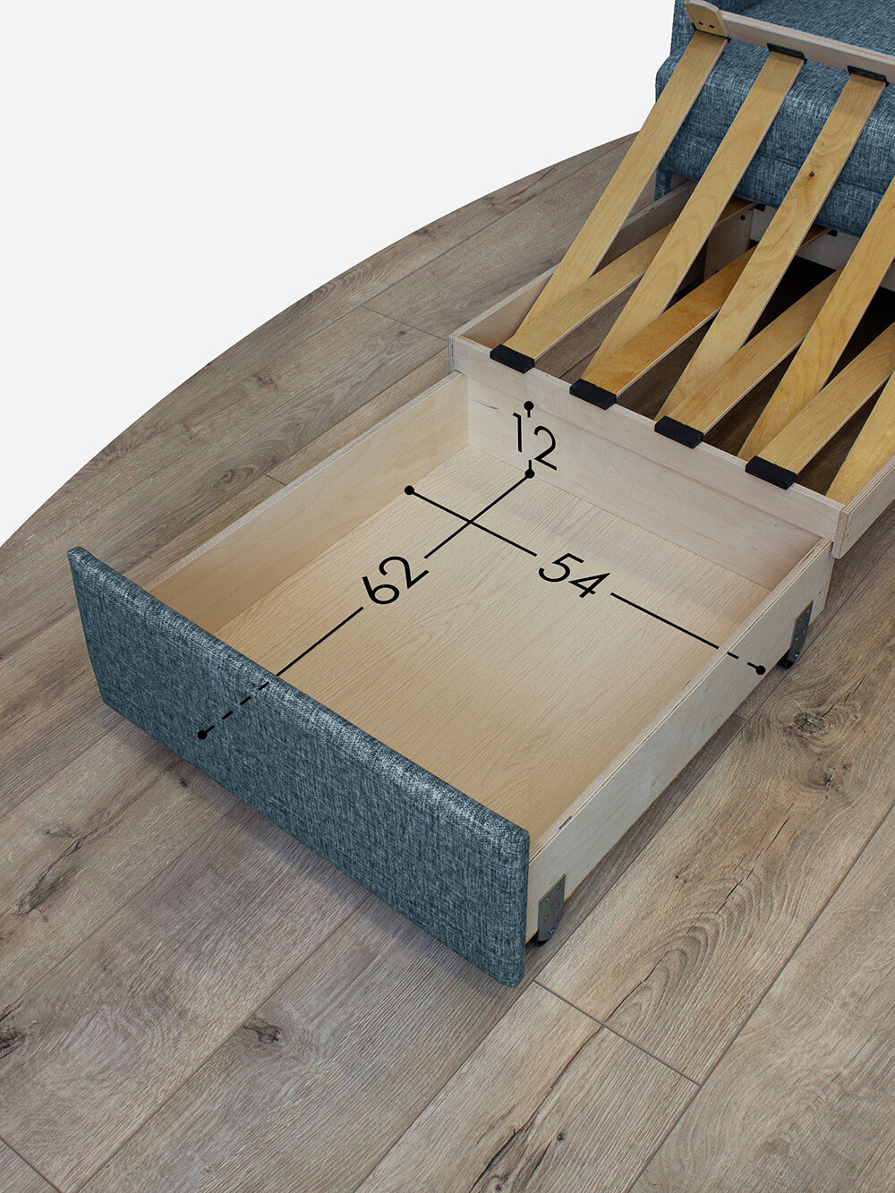 | Дополнительная информация | Обращаем Ваше внимание, что в разложенном виде кресло-кровать может скользить на глянцевом полу, т.к. стоит на двух ножках и колесах. Размер и конструкция колес не предполагает наличие стопора (тормоза). В комплект входят два антискользящих подпятника, которые нужно приклеить на задние ножки. |