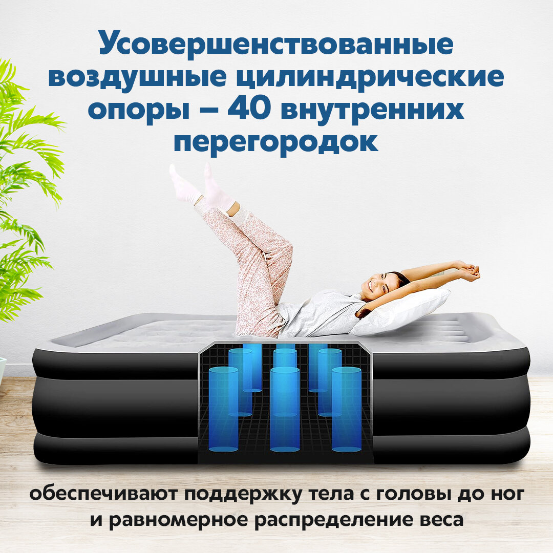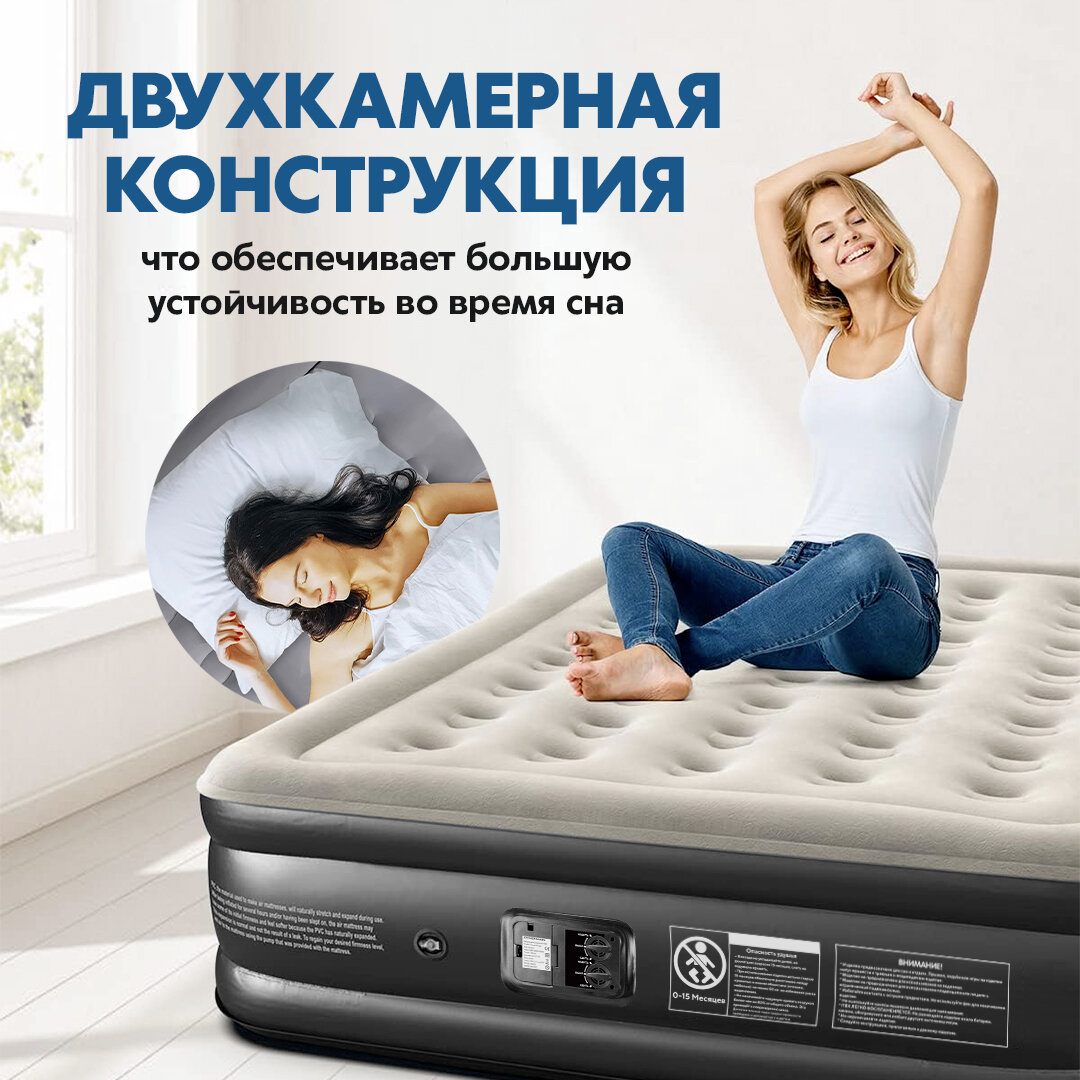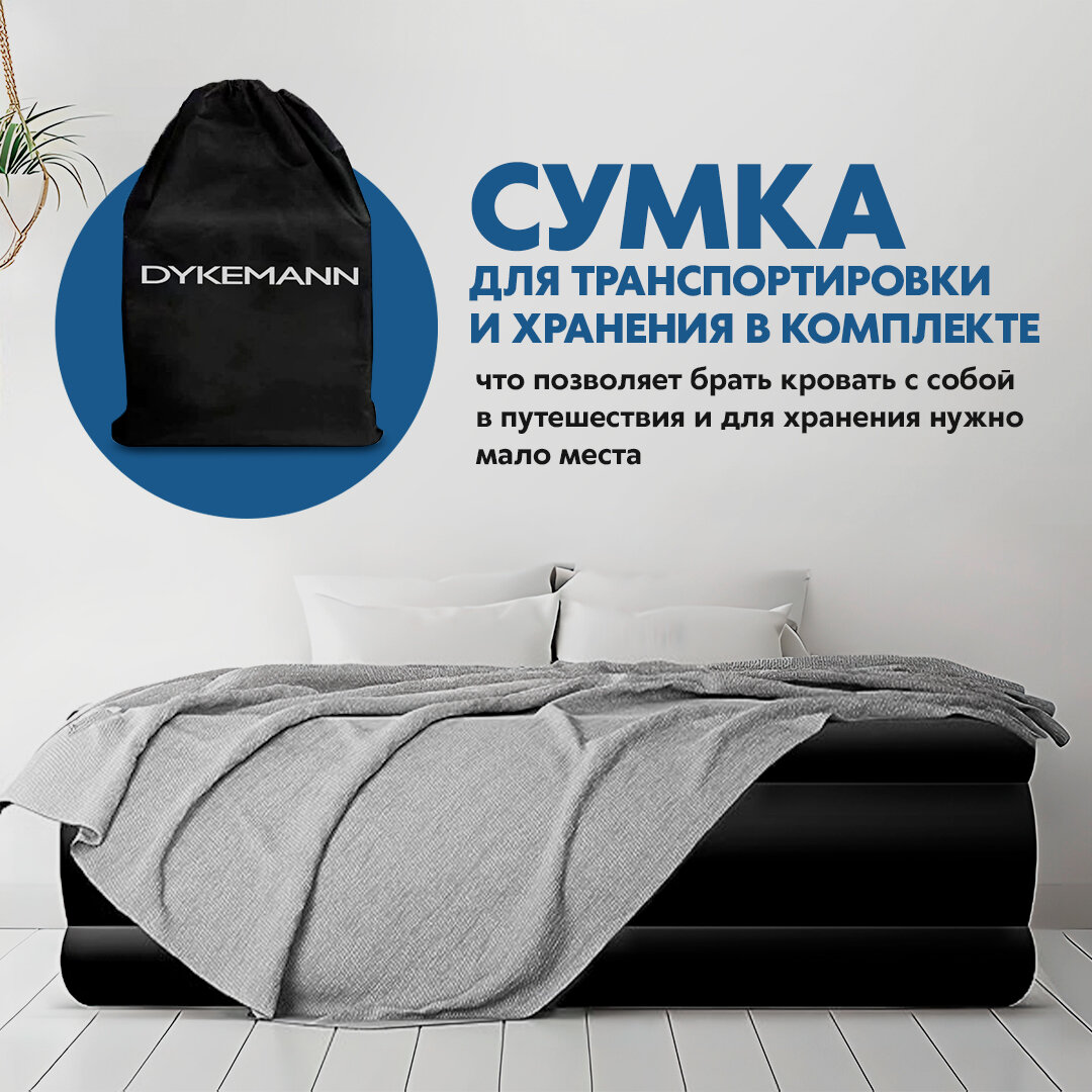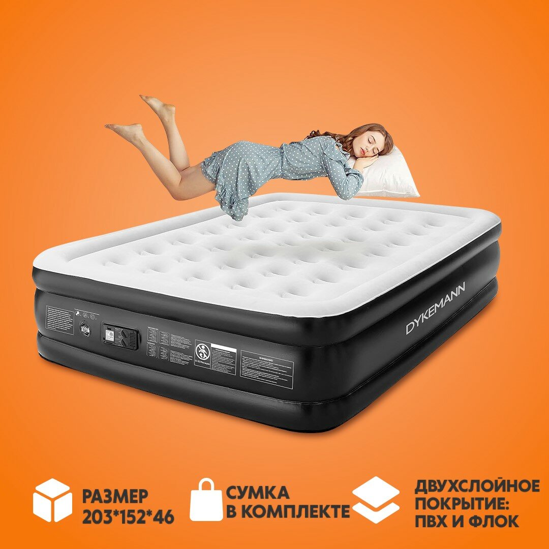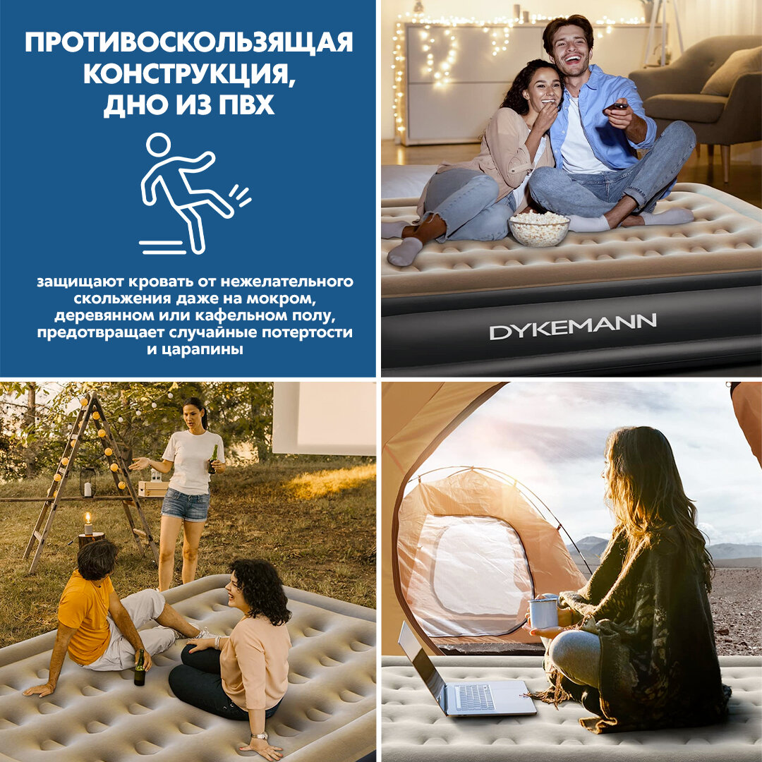 Надувная кровать Dykemann Traumfanger Queen 203х152х46 см/ надувной матрас со встроенным электронасосом/Пвх и флок/макс. вес-295 кг интересное: