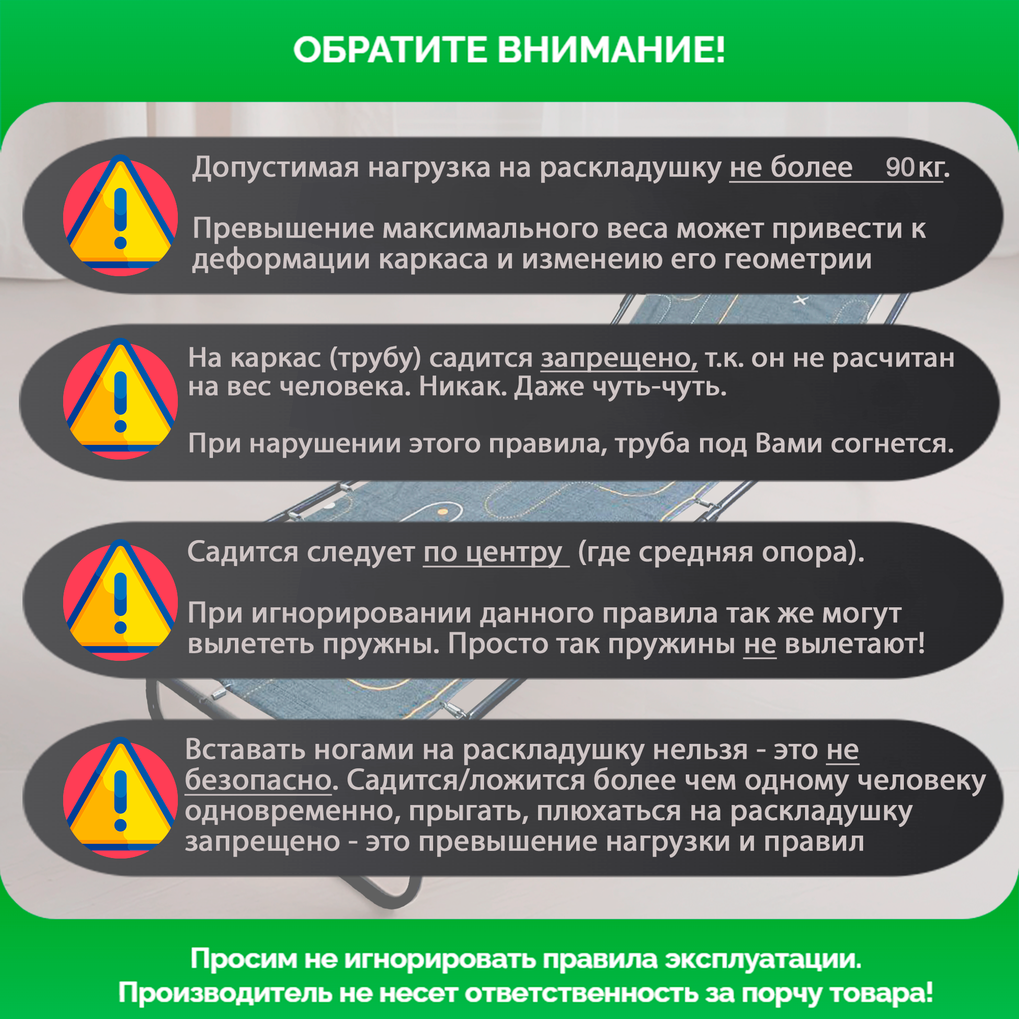 Раскладушка взрослая без матраса для сна односпальная, нагрузка 90 кг интересное: