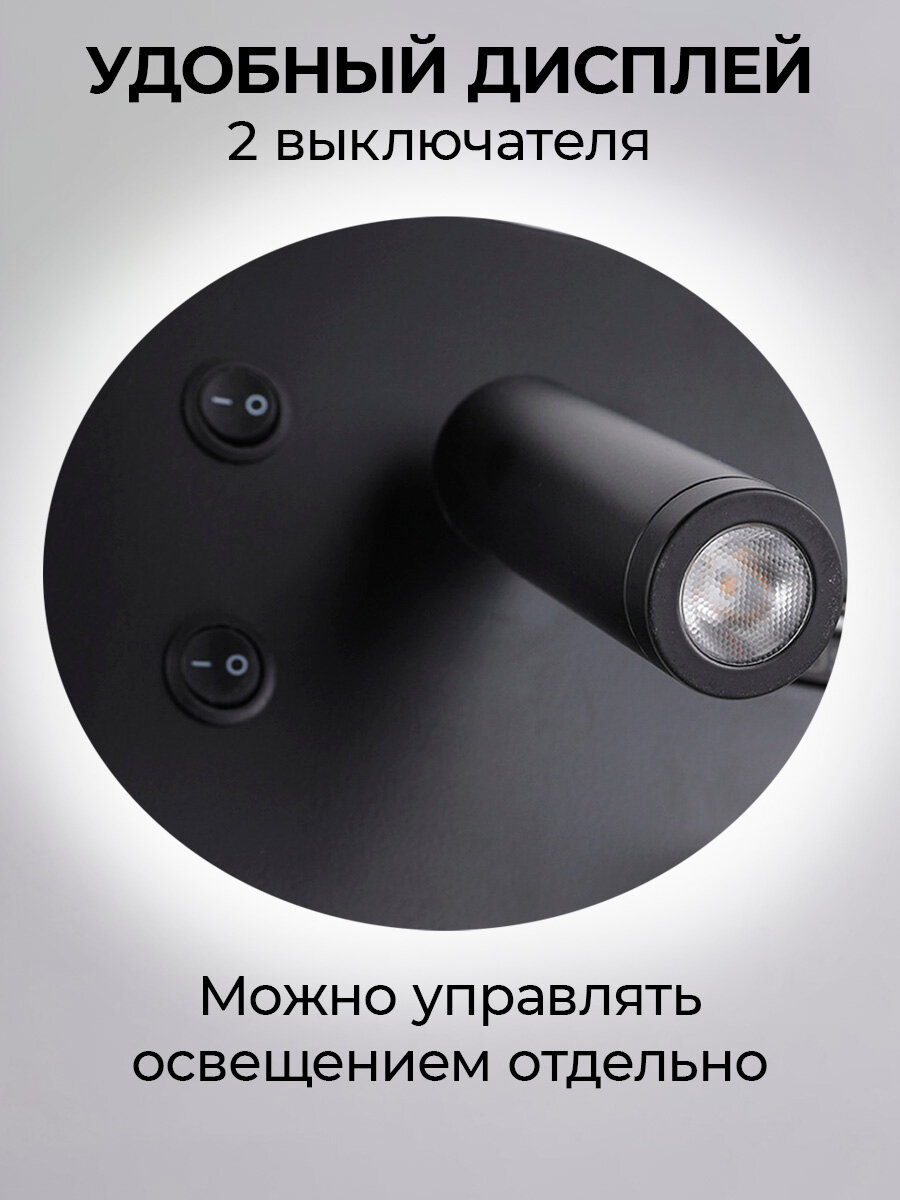 Светодиодный поворотный настенный светильник с выключателем + с зарядкой USB Marseille Black черный, 13W, 4000К, бра