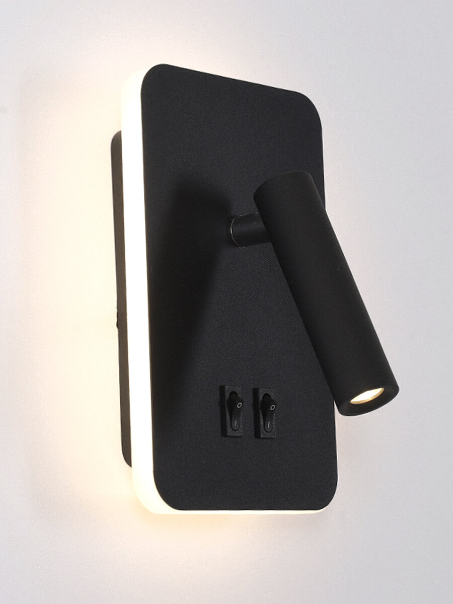 Купить Светодиодный поворотный настенный светильник с выключателем Marseille Black черный, 13W, 3500K, прикроватный, бра