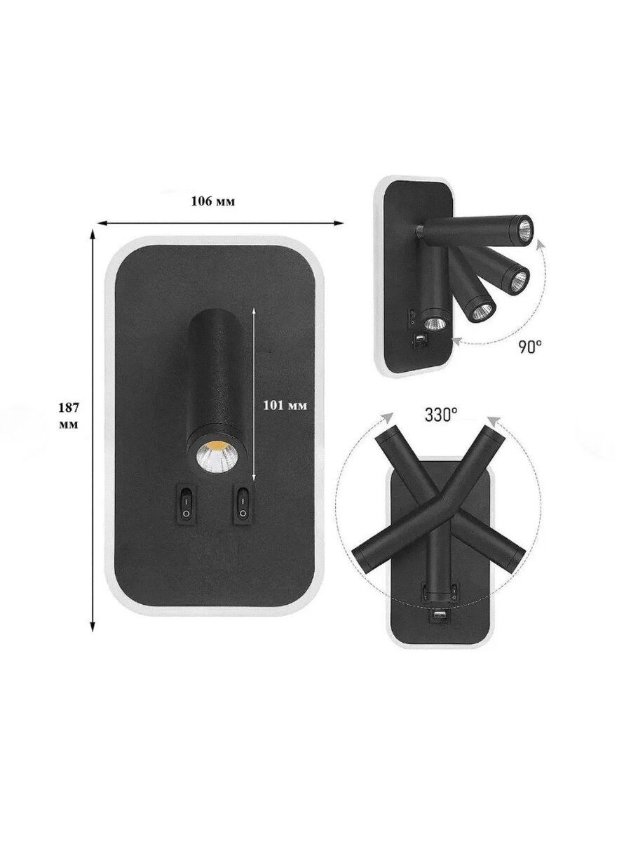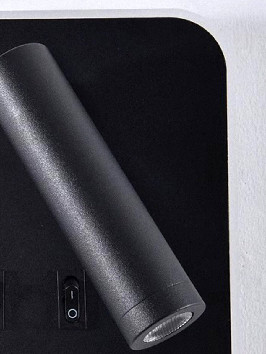Светодиодный поворотный настенный светильник с выключателем + с зарядкой USB Marseille Black черный, 13W, 4000К, бра