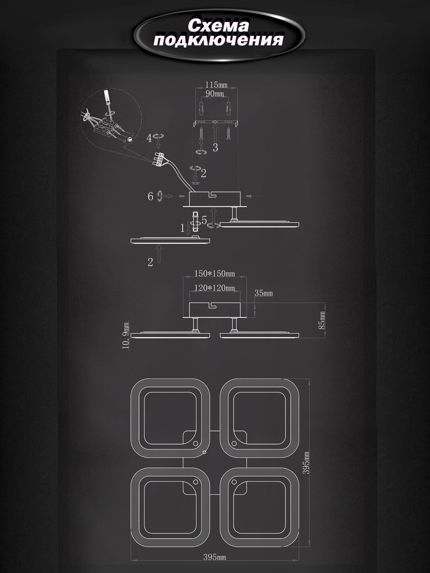 Люстра потолочная светодиодная Семь Огней, черная с пультом, для спальни, зала, кухни