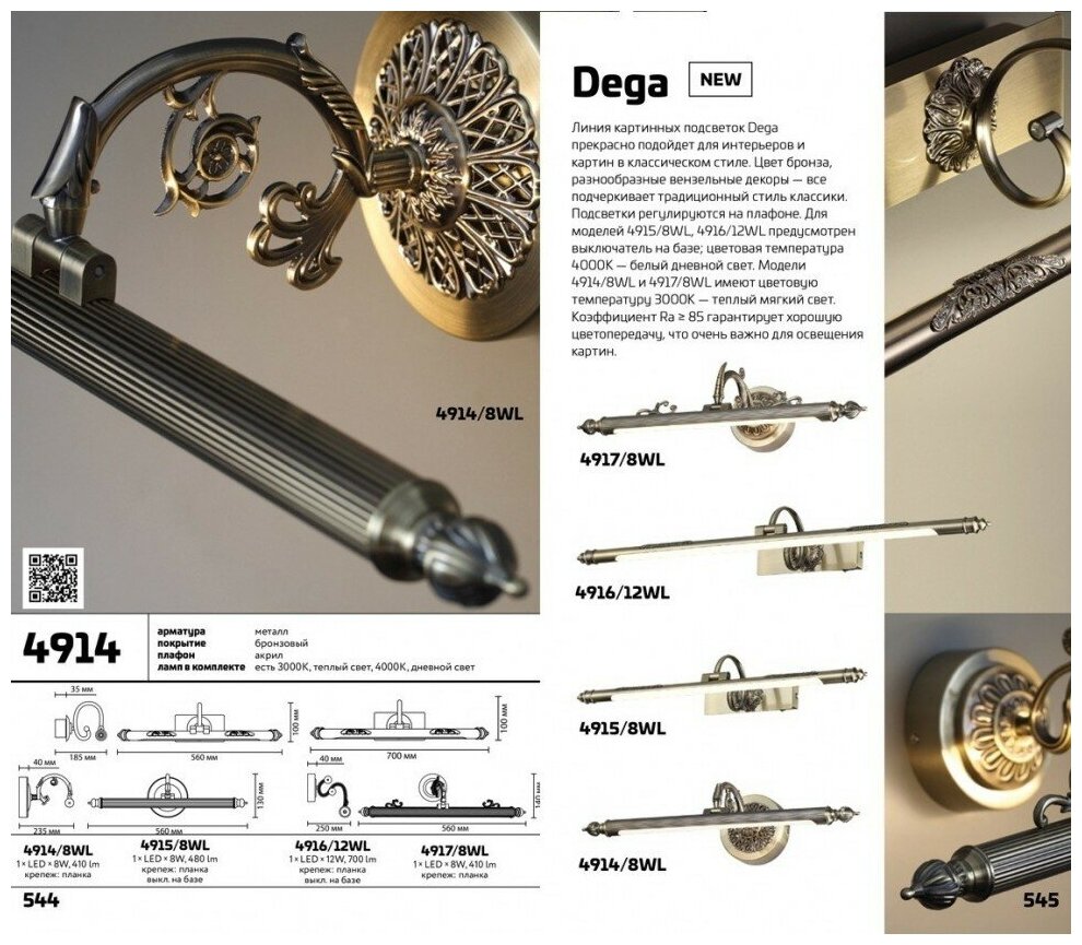 СохранитьПодсветка для картин | ODEON LIGHT | DEGA | 4914/8WL | LED | 3000K | бронзовый | металл | IP20 | интересное: