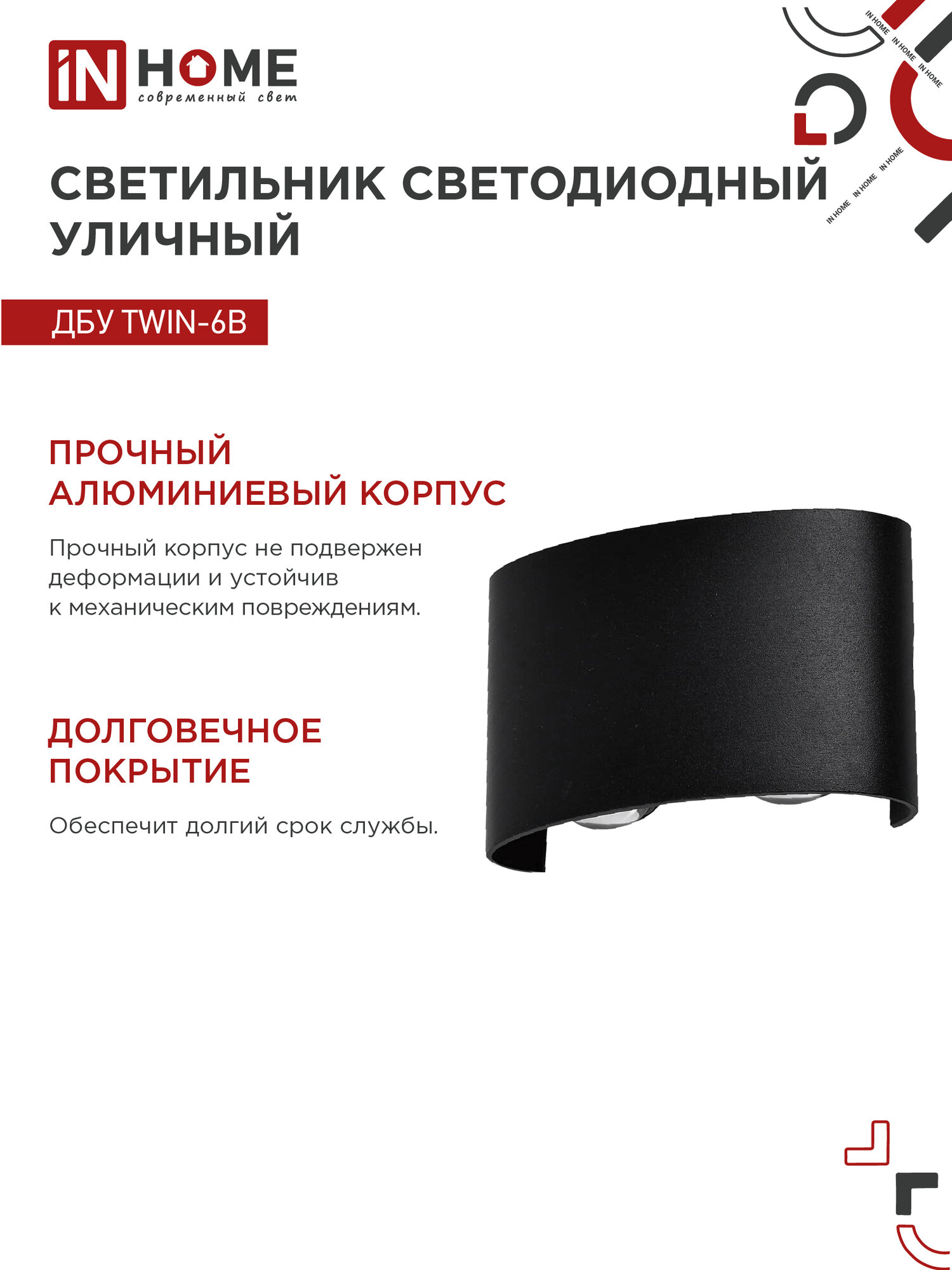 Светильник уличный светодиодный ДБУ TWIN-630BL 6Вт 3000К IP54 черный IN HOME (1шт) интересное: